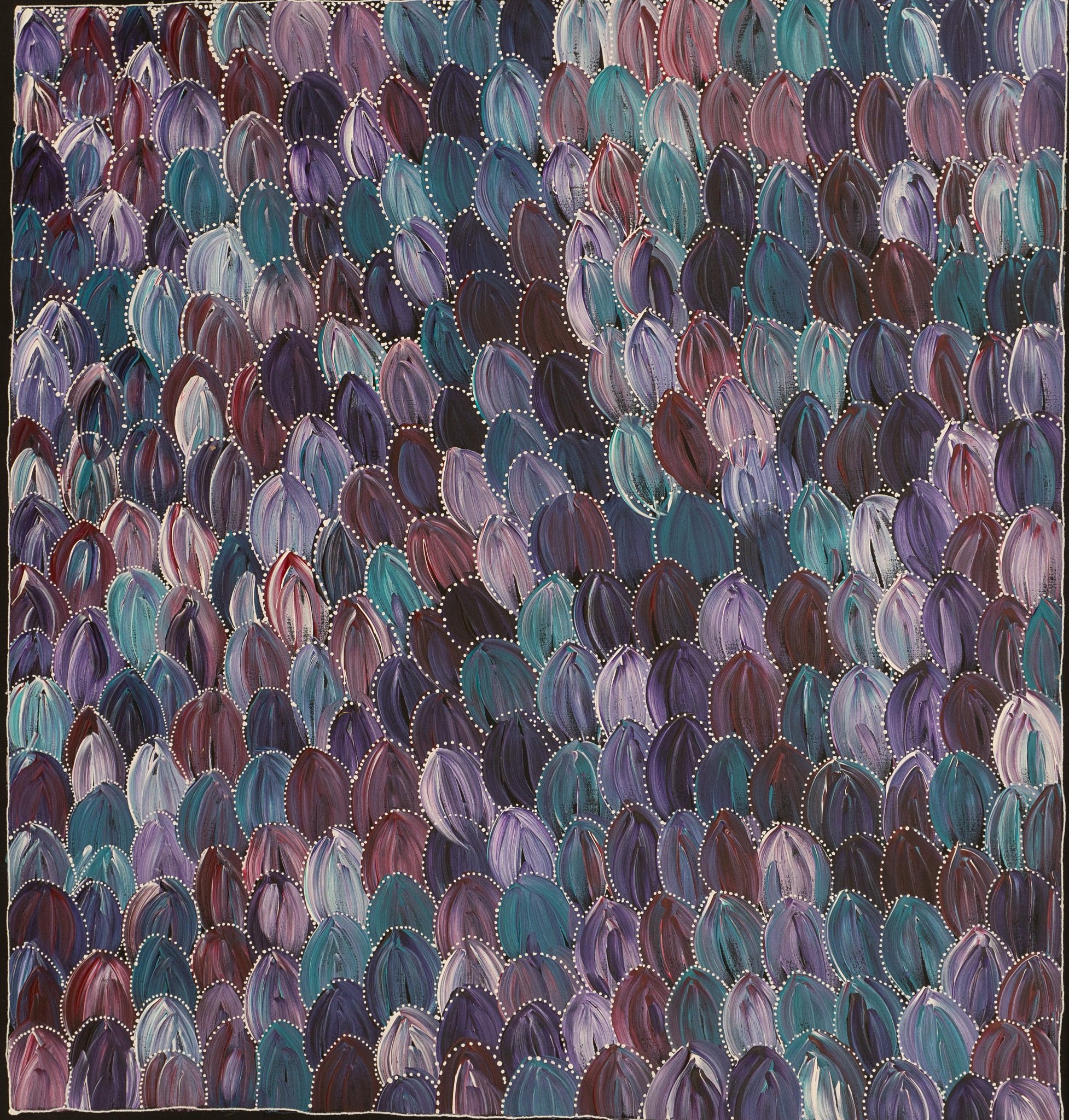 Alvira has painted the Desert Yam (or Bush Plum) story from her family’s country.