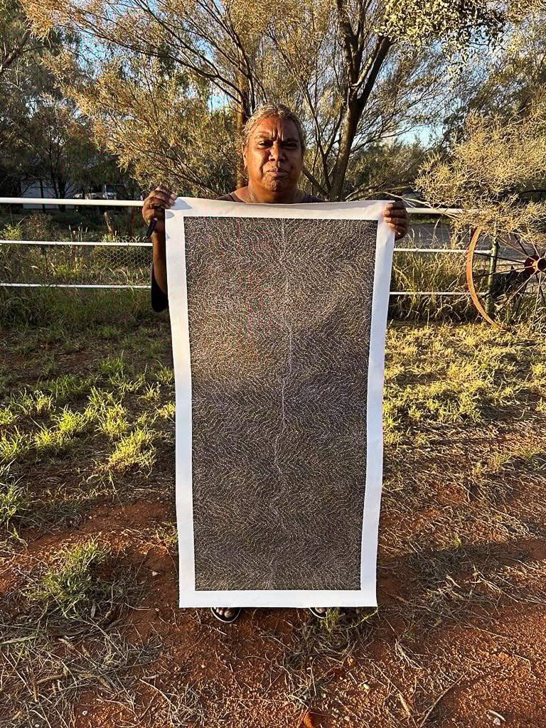 Annie Nelson grew up at Ti Tree, a small community approximately 2 hours North of Alice Springs. She is the daughter of senior elder and artist, Polly Nelson Nungala.