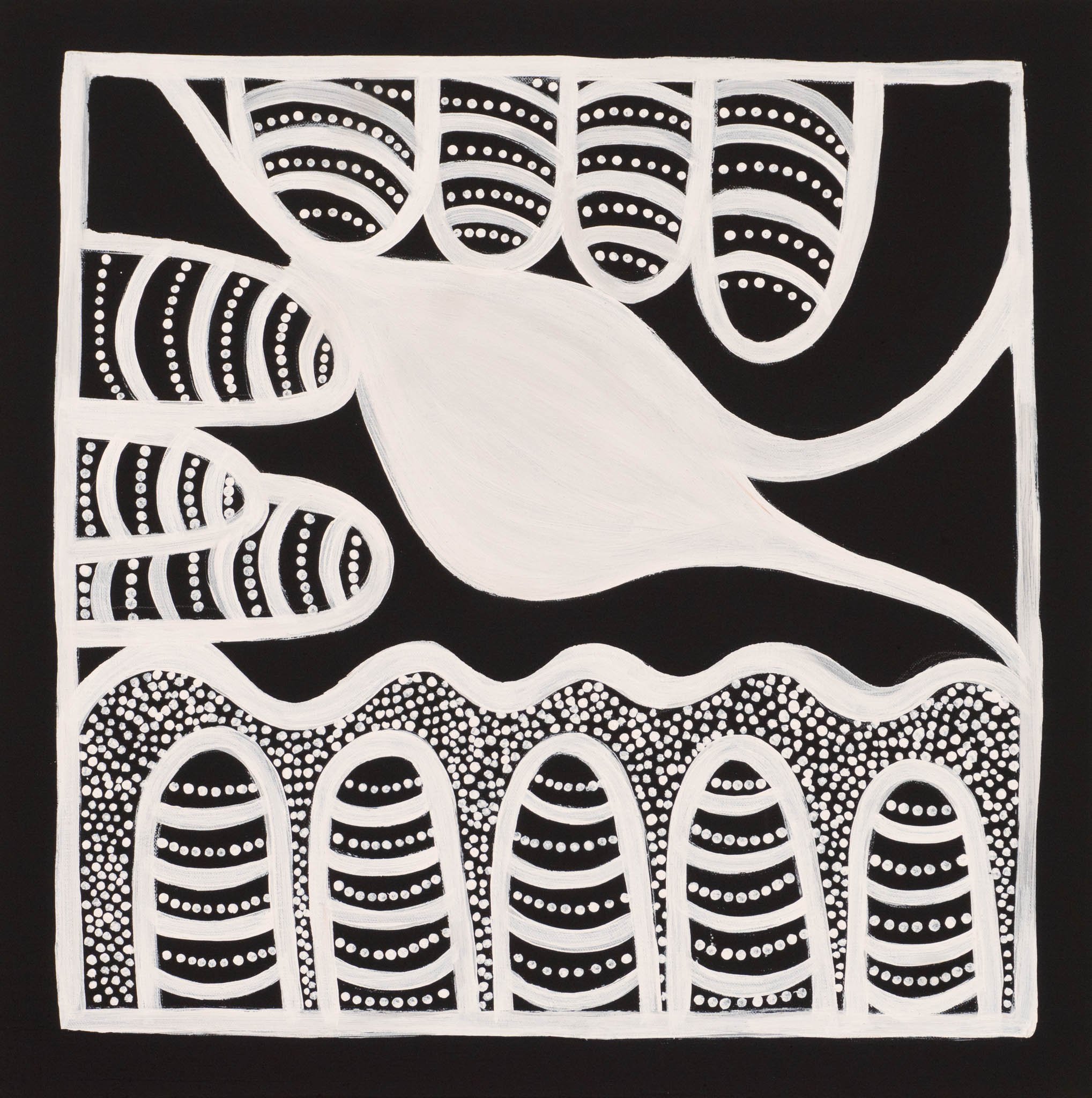 I’ve painted Purnululu at night time looking down from the sky. When we go out bush we sleep outside and you lie down and just stare at that beautiful clear night sky. It’s the best place in the world. Every time you go there, it looks different. It’s just like magic – you can paint the same place at a different time of the day or year, and it’s the colours that make it look never the same. This is a very important part of the Gija country and because it is right next to Texas Downs which is my family’s country, we all paint it.
