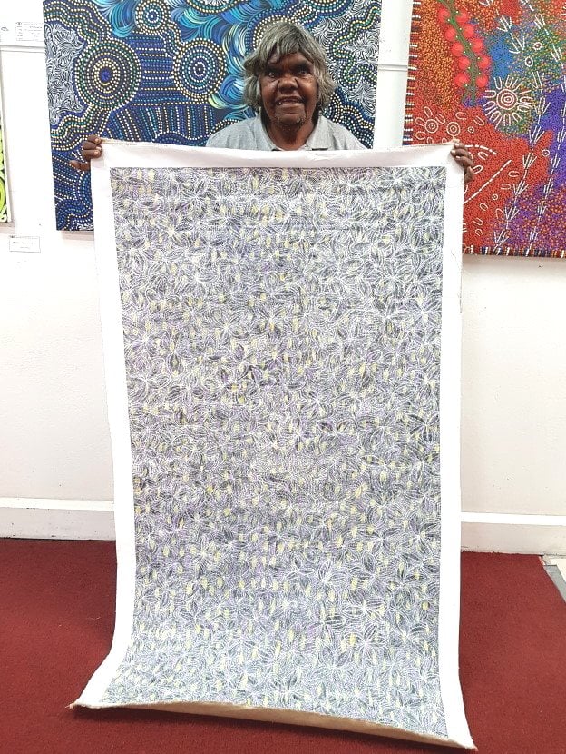 Audrey is a member of the famous Kngwarreye family, including International artist Emily Kngwarreye who is recognised as some the most famous female indigenous artist in Australia. Along with her mother, artist Mary Morton Kemarre and sister Lucky, Audrey started working in batik in the late 1970’s and in the early 1980’s began painting on canvas. Audrey has featured in many exhibitions since 1977, including shows at Utopia Art, Sydney; the Orange Regional Gallery; the Austral Gallery, St Louis, USA; the Royal Hibernian Academy, Dublin, and the Araluen Art Centre, Alice Springs.