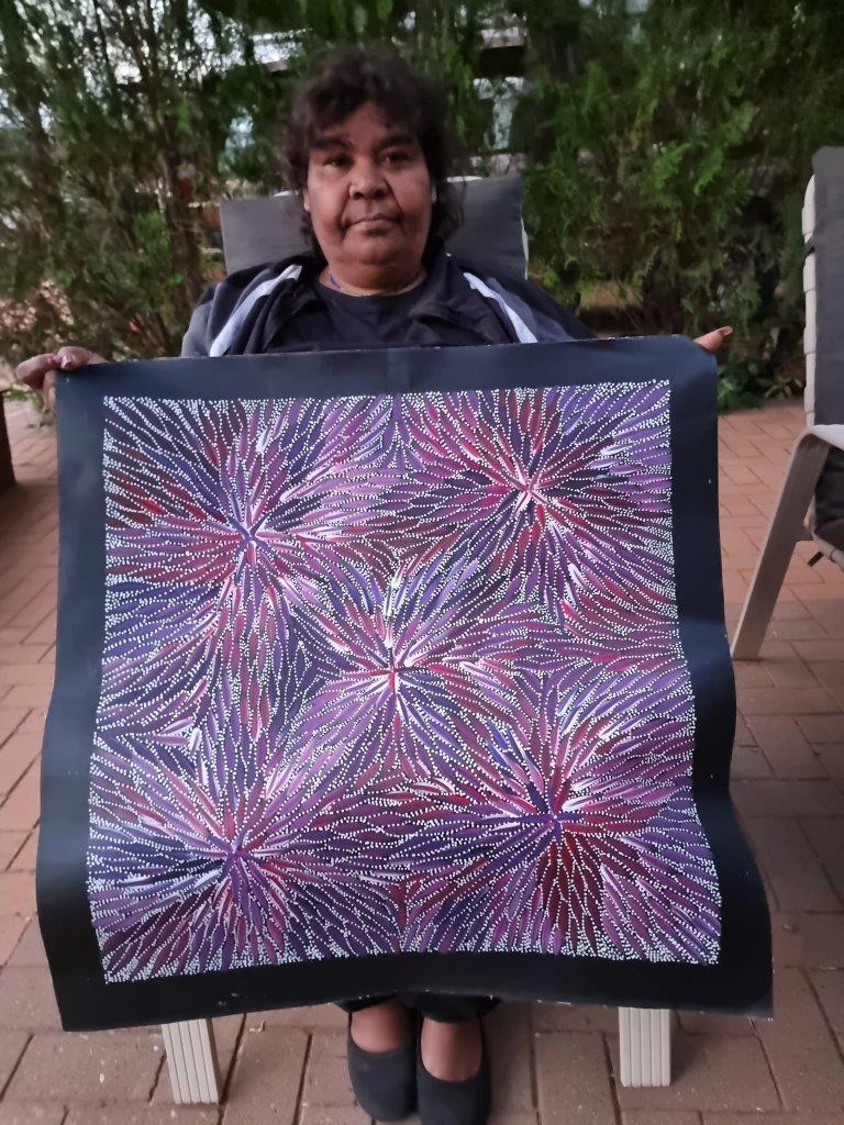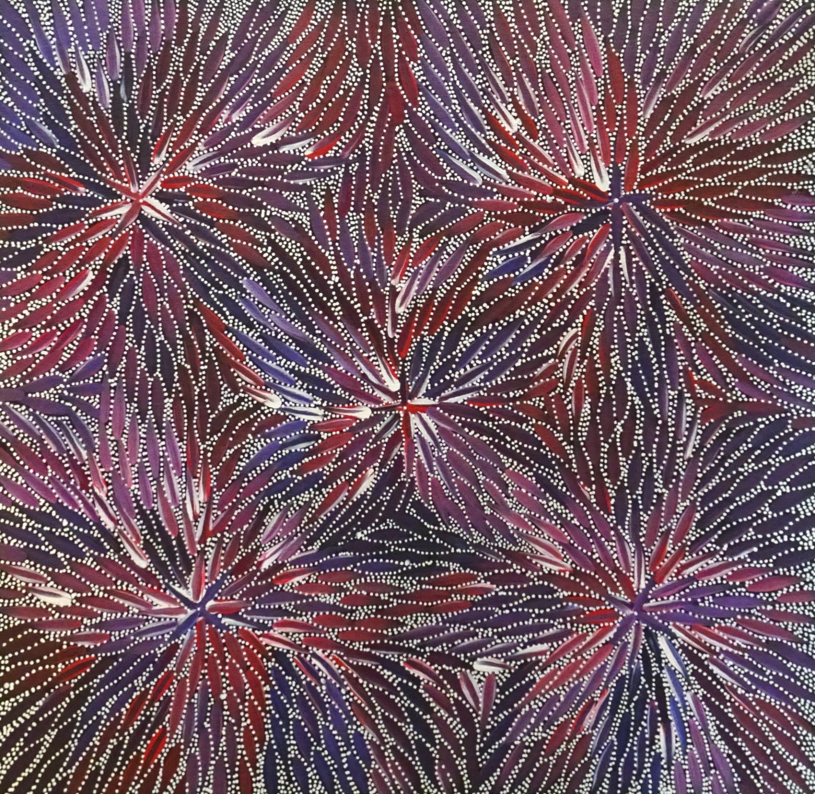 Bernadine comes from a family of famous artists including Abie Loy and Josie Petrick Kemarre that have emerged from the Utopia area in the NT. Her sister-in-law is Anna Price Petyarre, one of the most sort after Central Desert artists. She learnt from a young age the art of painting her dreamings, ceremonies and important bush foods onto canvas.