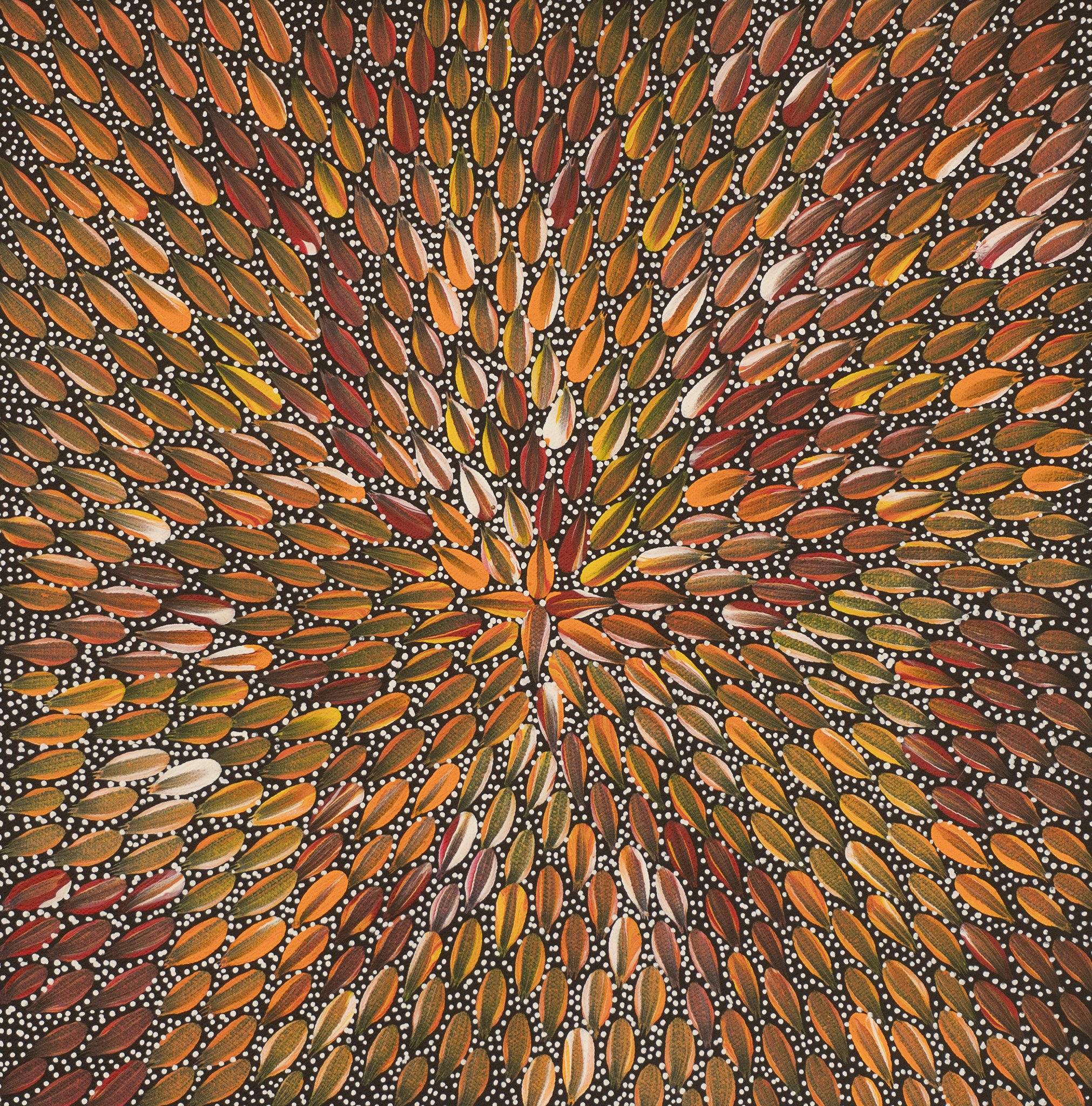 Bernadine has painted the Desert Yam (or Bush Plum) story from her family’s country.
