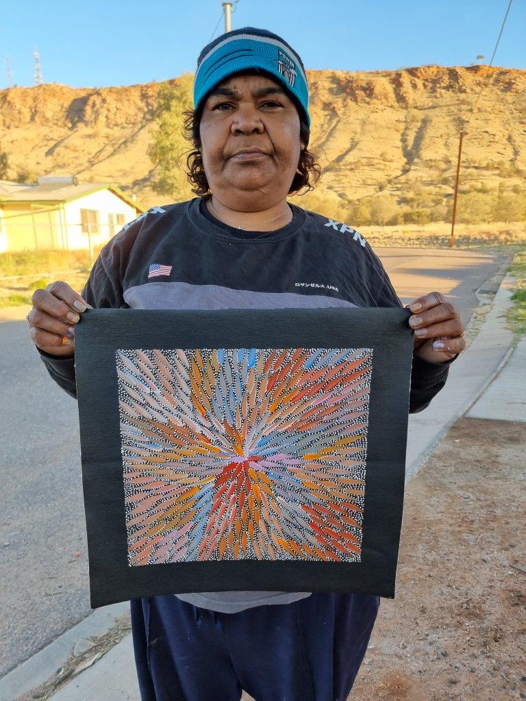 Bernadine comes from a family of famous artists including Abie Loy and Josie Petrick Kemarre that have emerged from the Utopia area in the NT. Her sister-in-law is Anna Price Petyarre, one of the most sort after Central Desert artists. She learnt from a young age the art of painting her dreamings, ceremonies and important bush foods onto canvas.