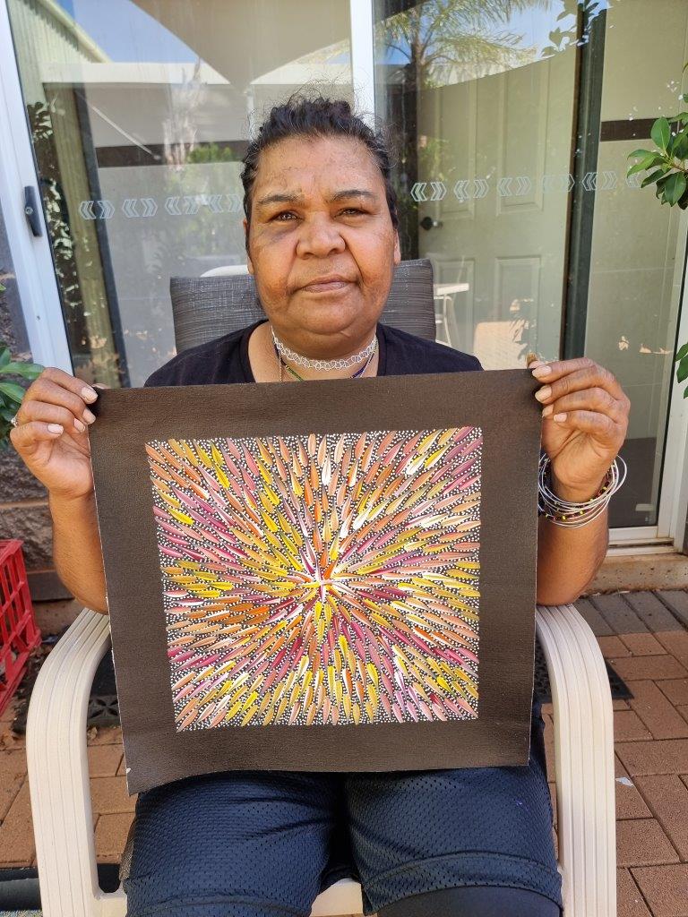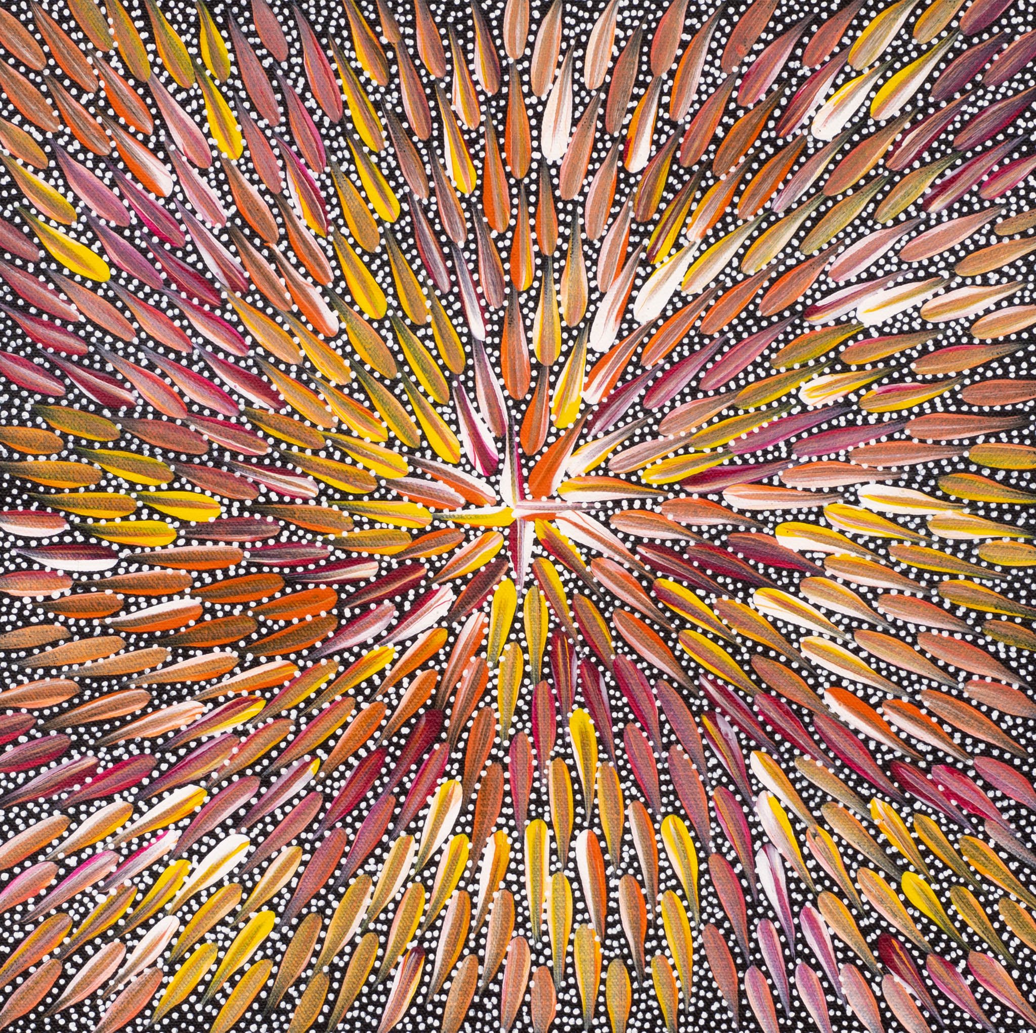 Bernadine comes from a family of famous artists including Abie Loy and Josie Petrick Kemarre that have emerged from the Utopia area in the NT. Her sister-in-law is Anna Price Petyarre, one of the most sort after Central Desert artists. She learnt from a young age the art of painting her dreamings, ceremonies and important bush foods onto canvas.