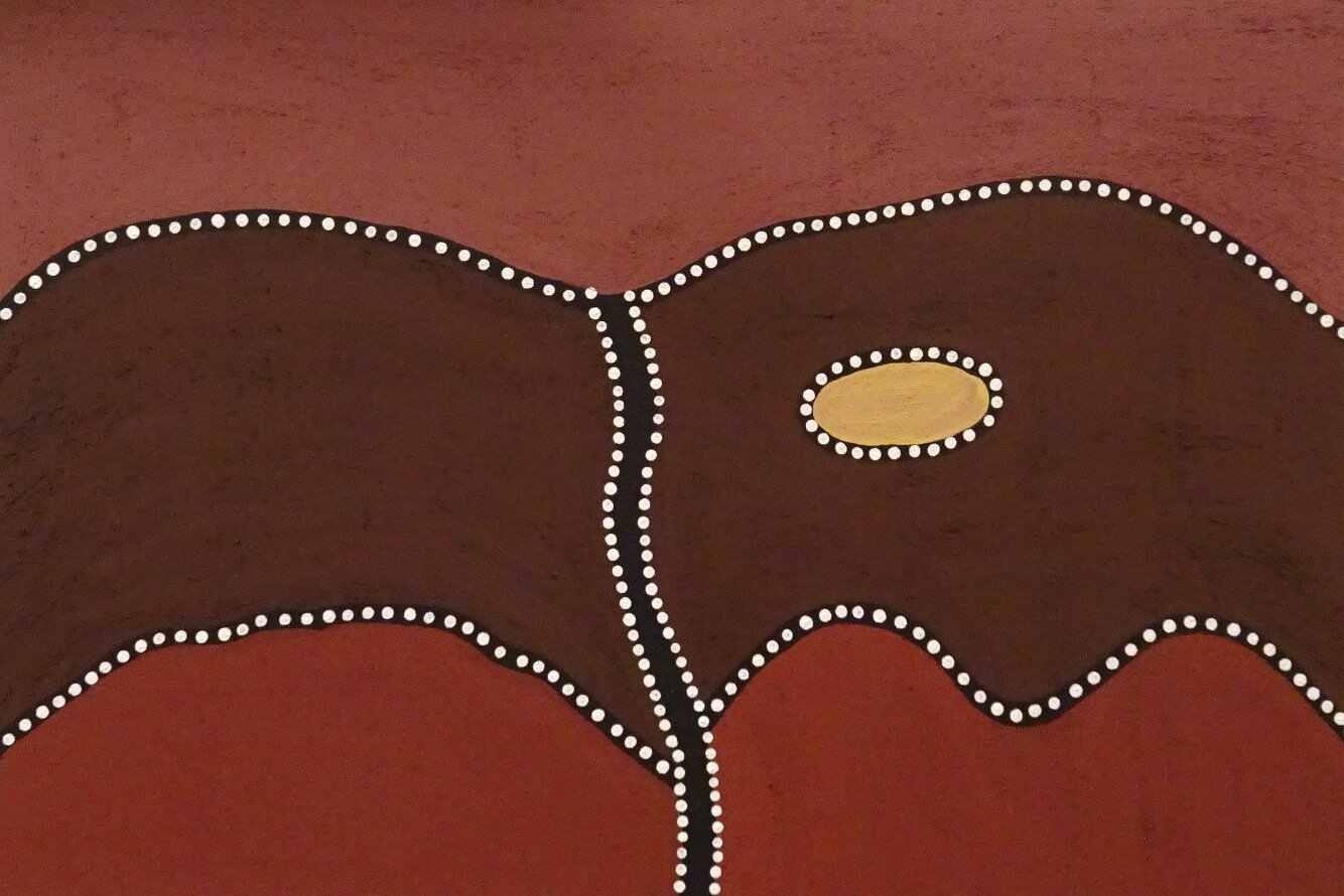 In the Ngarrangkarni (Dreamtime) Eagle Hawk and Crow were in human form and were husband and wife. They turned into birds and live in the trees at the top of the hills (these are the hills behind Warmun Community). The roundel in the hillside was their campfire – it is actually quartz, which was used for making spearheads and it is still evident today.