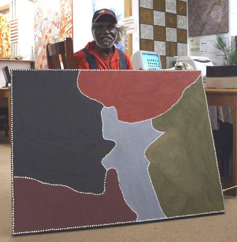 Chuchill passed away peacefully at home in January 2016 surround by his family after a long illness. Churchill was one of Australia’s most famous Ochre Artists, with an instantly recognisable style and the ability to blend every colour imaginable from the basic ochres found in his Kimberley region.