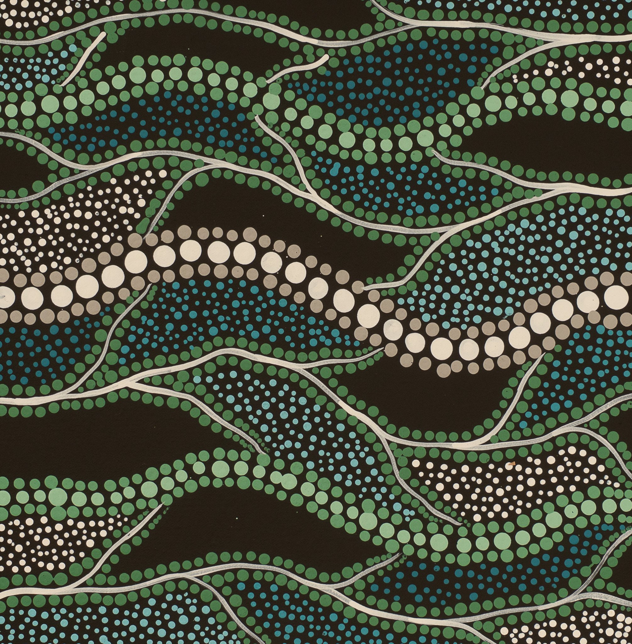 Over the past decade, he has continued learning from them, deepening his cultural knowledge and sharing it through his artworks. In 2015, Davinder left the Northern Territory to continue learning from his cultural teachers on Country in New South Wales. His artworks embody the wisdom passed down by his cultural grandfather and uncles. Through painting, he navigates the modern world, deeply influenced by traditional Ngurrumpa (Dreaming) stories and applying their important lessons in real time.