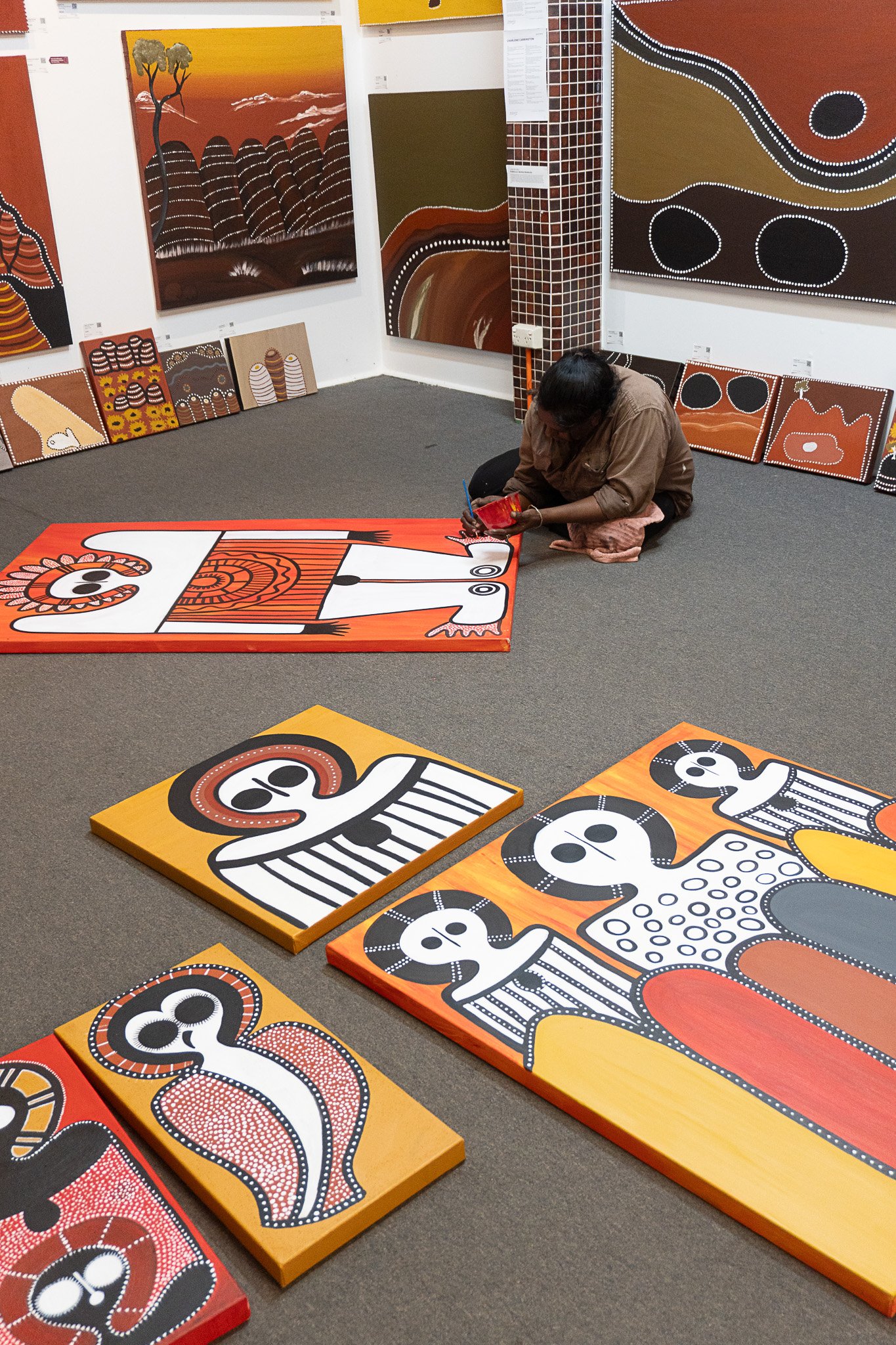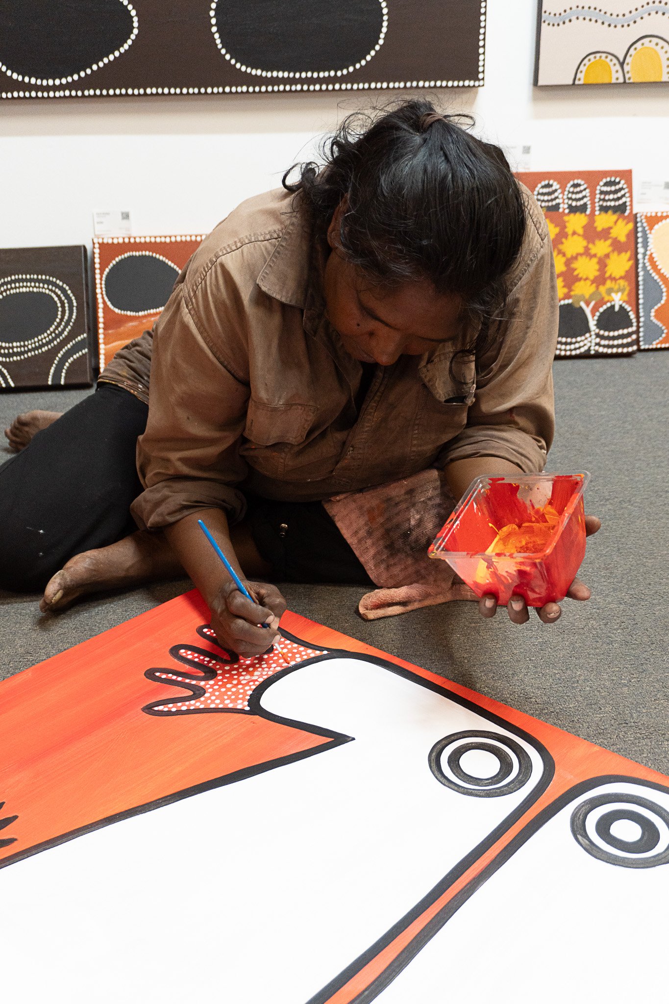 Petrina’s mother, Edna Dale, is a senior artist and Petrina and her mother often paint side by side. Petrina was only 12 when her first artworks were included in an exhibition at Japingka Gallery in Perth alongside the works of her mother and grandfather. An incredible achievement for such a young artist.