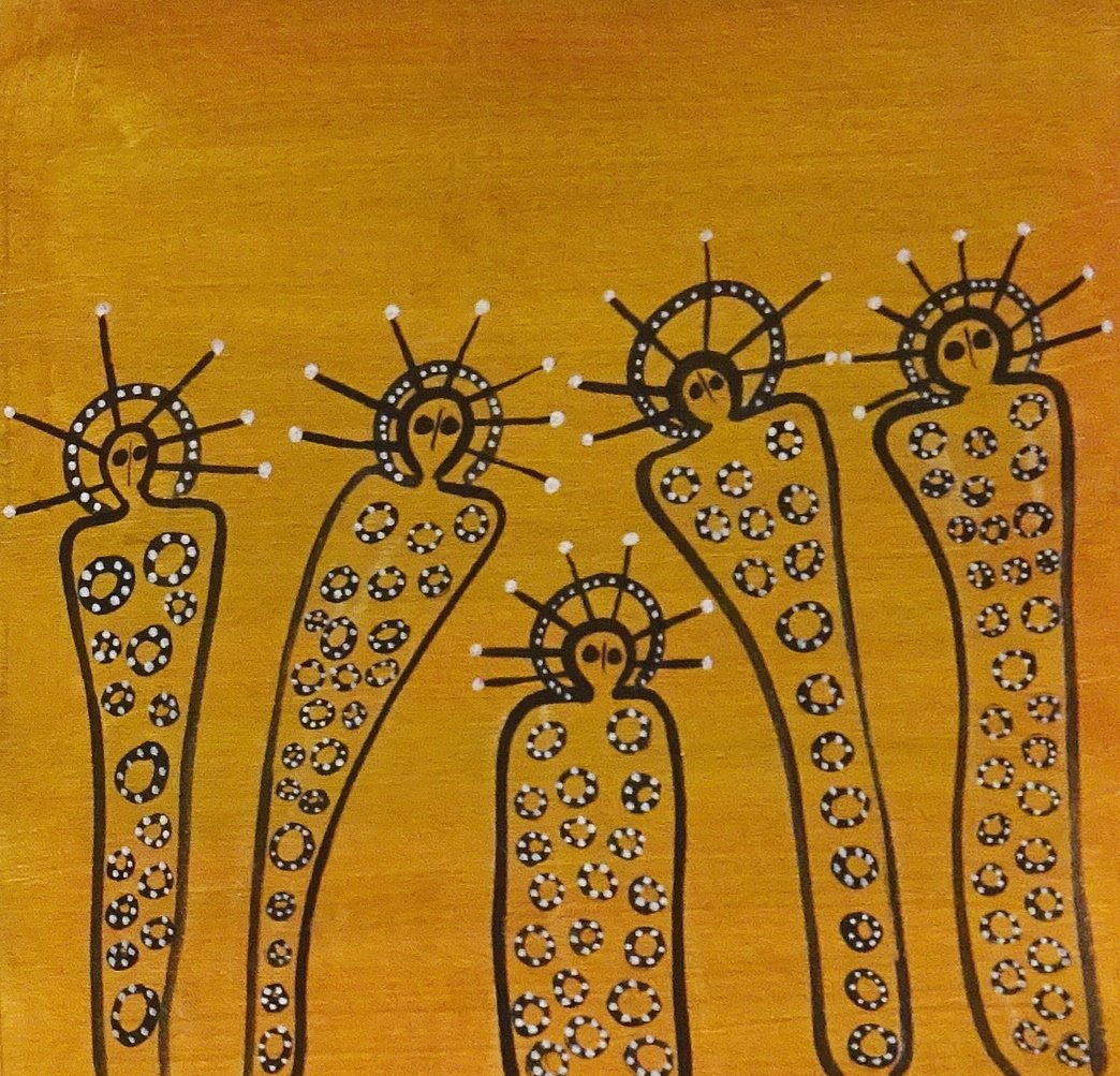 Edna has her own distinct style, her elongated Wandjina figures and minimalist aesthetic are a clear departure from the imagery of her father.