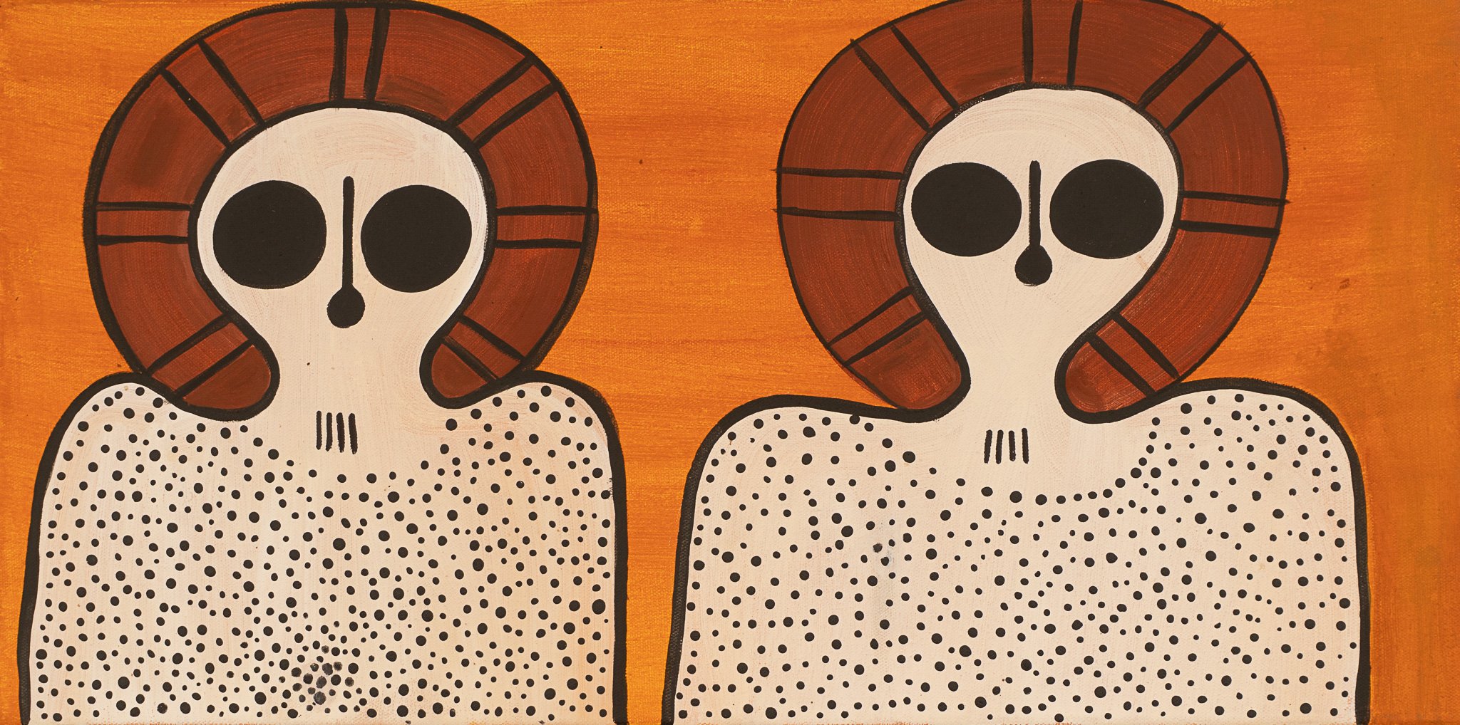 Edna has her own distinct style, her elongated Wandjina figures and minimalist aesthetic are a clear departure from the imagery of her father.