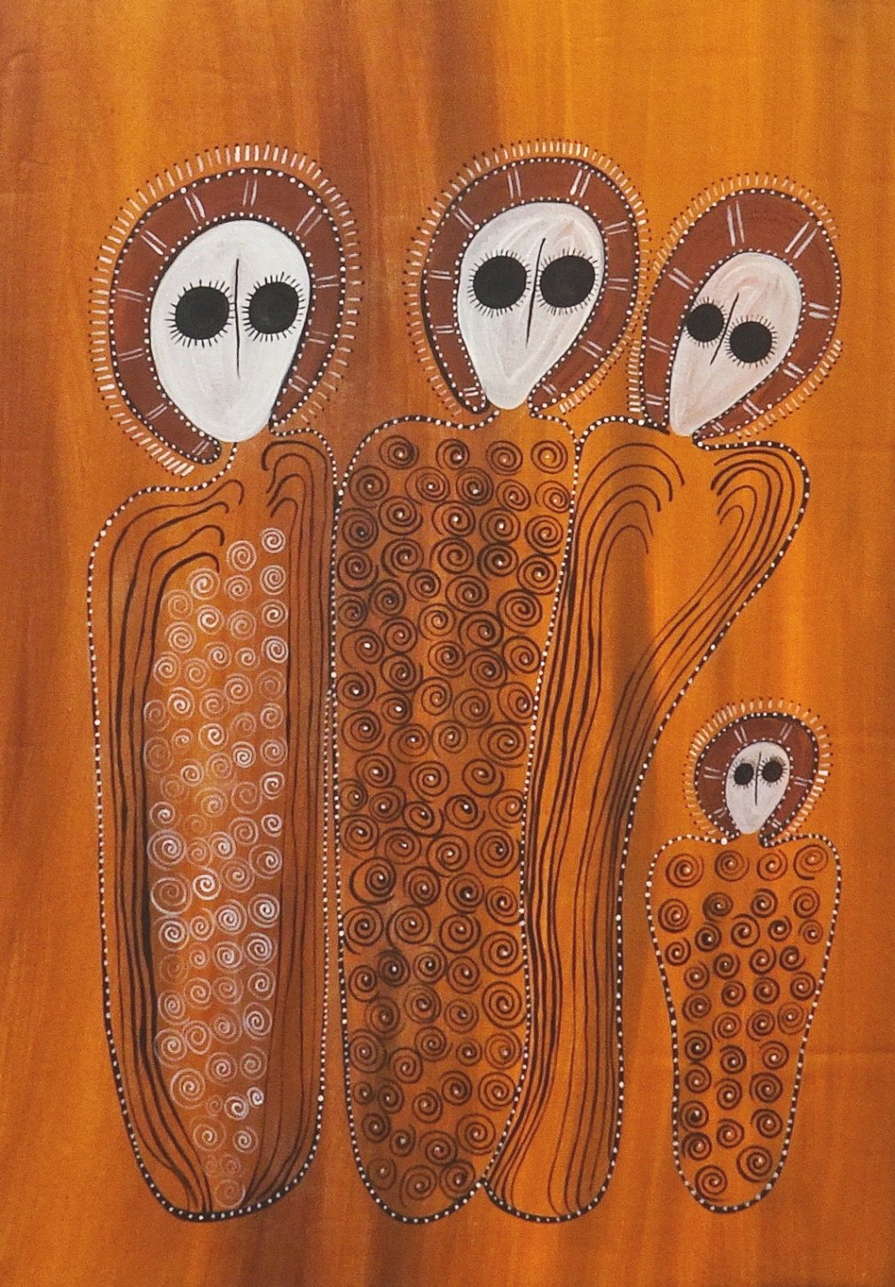 Edna has her own distinct style, her elongated Wandjina figures and minimalist aesthetic are a clear departure from the imagery of her father.