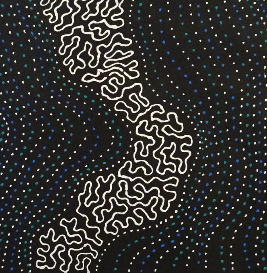 Her style is similar to that of her mother Anna with intricate dot work telling the story of her country.