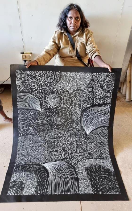 Her style is similar to that of her mother Anna with intricate dot work telling the story of her country.