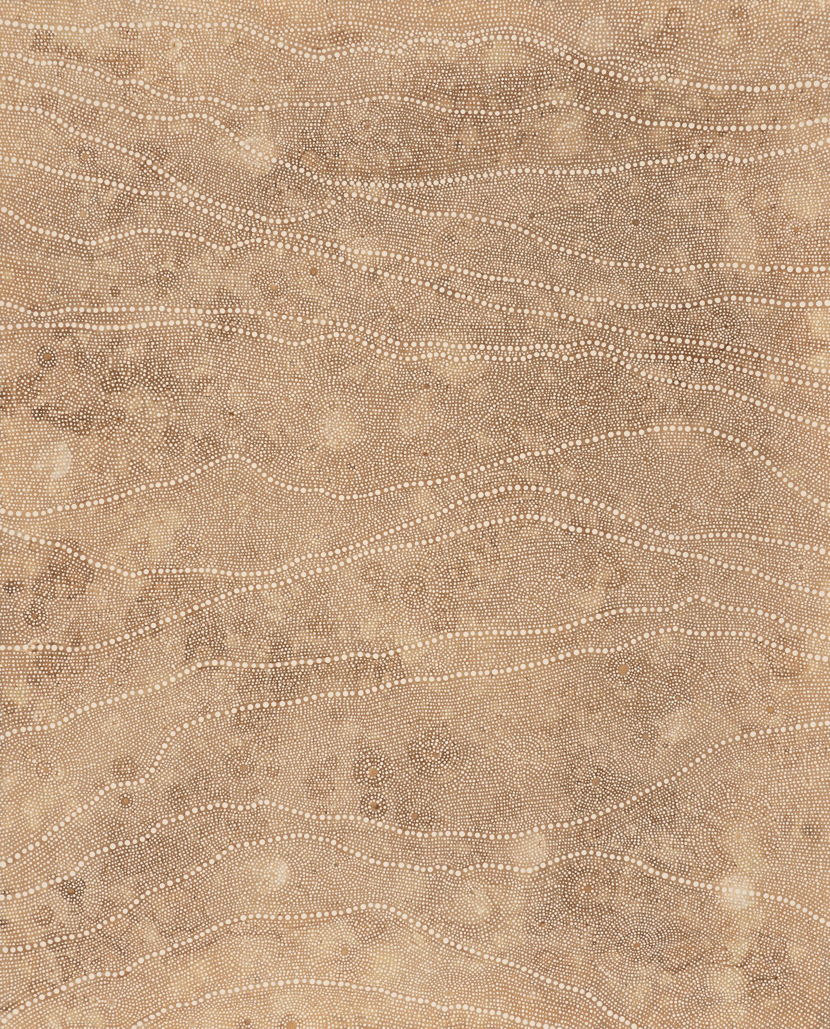 Bunjil’s Dream captures a shimmering expanse of dots that trace the contours of Country, merging the patterns of the land with the celestial beauty seen from above. It is as if we are soaring with Bunjil, the wedge-tailed eagle, witnessing the vastness and richness of our beautiful land from his flight.