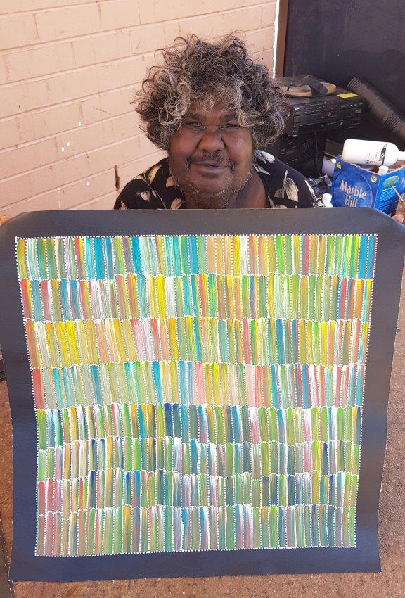 Jeannie is a quiet lady who chooses to spend most of her time in her traditional homelands at Utopia with her immediate family creating her stunning artworks. With painting ‘in her blood’ Jeannie was destined to be a great artist. Her beautiful Yam Dreaming artworks have been snapped up by both Australian and International collectors.