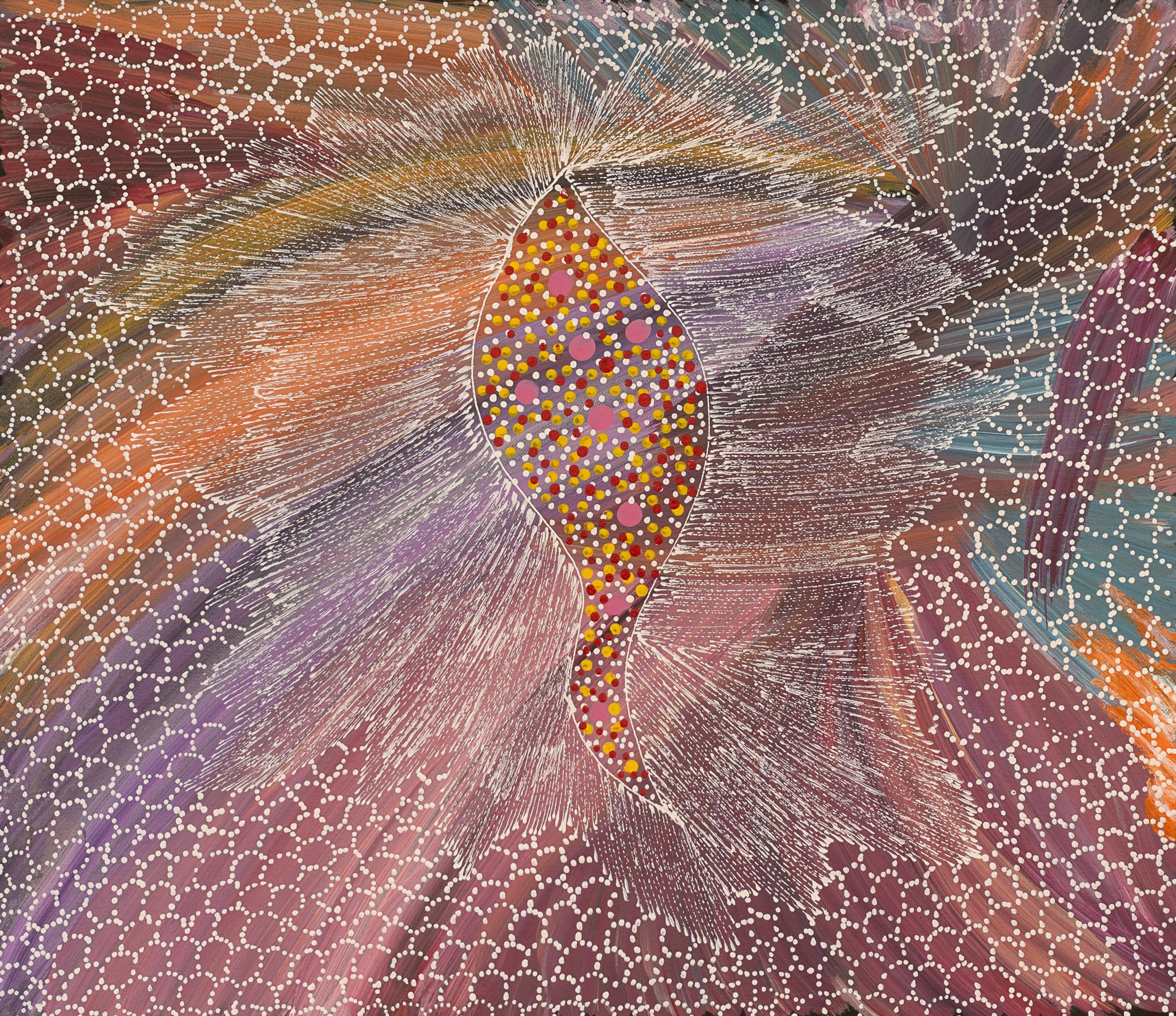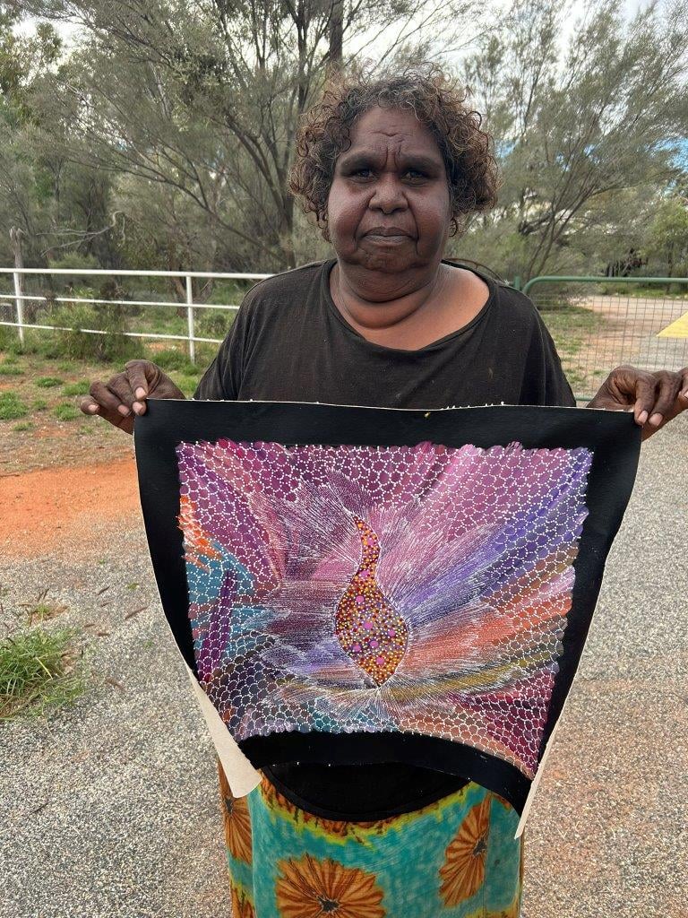 Jedda, along with her sister Judy, is a naturally talented artist whose works are sort after by collectors both in Australia and overseas. She is without a doubt one of the shining lights of the younger generation of Aboriginal artists. Jedda was involved with the Utopia Batik movement and her work features in the prestigious Holmes á Court collection.