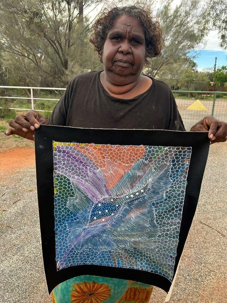 Jedda was born in 1969 and is the daughter to the late Greeny Purvis Petyarre and Kathleen Kemarre. Greeny was an international artist and senior custodian for Alhalkere country. Jedda’s Great Aunt is the late Emily Kngwarreye – arguably Australia’s most famous aboriginal artist. They have assisted and instructed this talented painter both culturally and artistically.