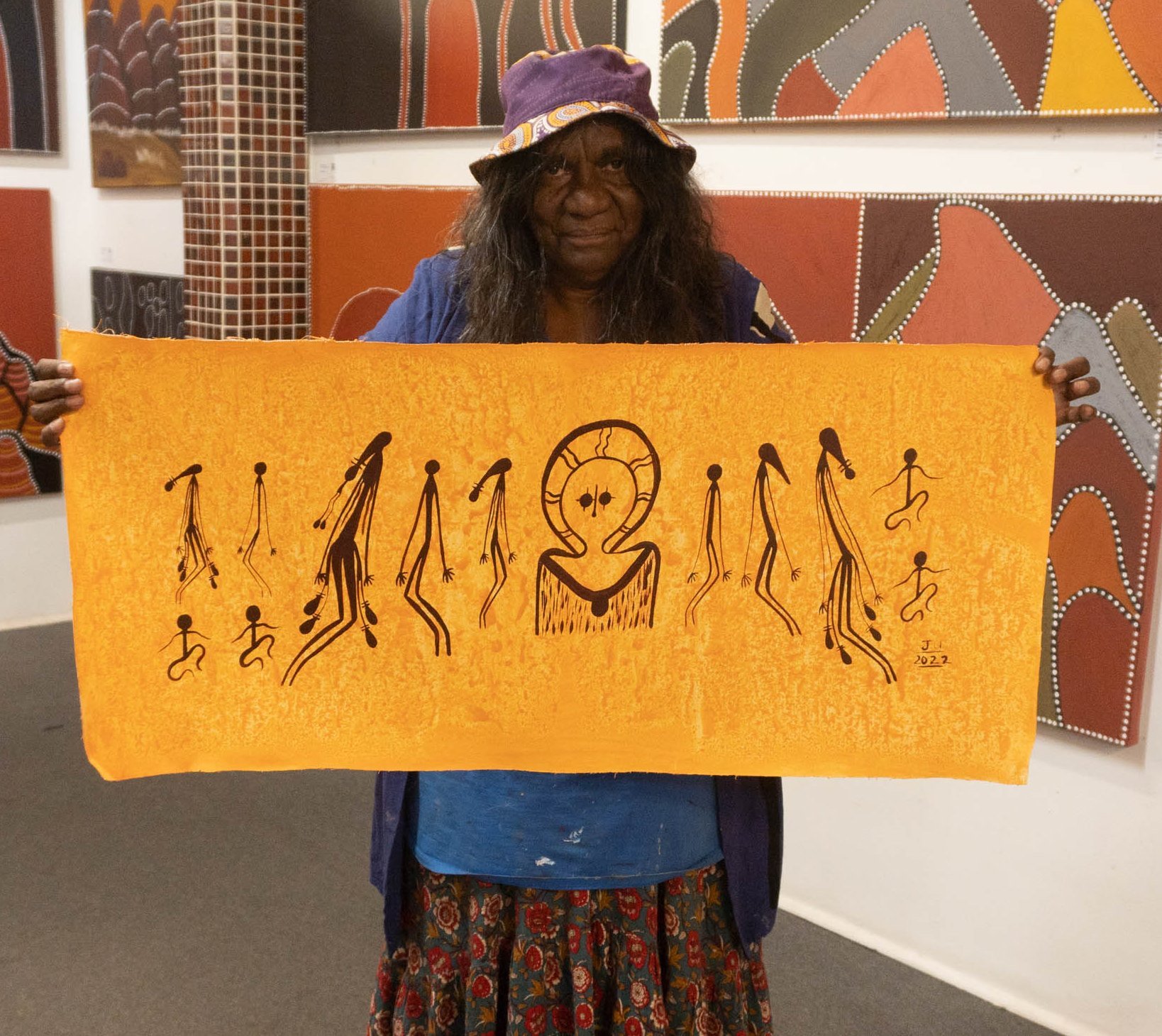 A quietly spoken and shy lady, Jemma has 5 children and has been painting since the mid 1990’s, selling her artworks through the Kalumburu Museum. She has also been heavily involved with painting beautiful artworks for the Kalumburu Catholic Church.