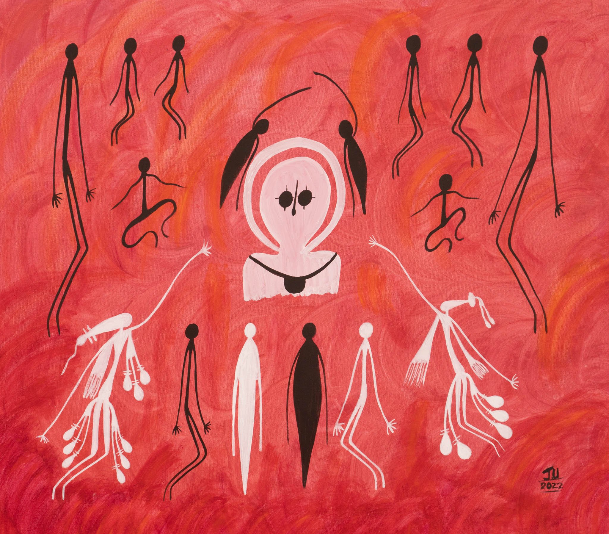 Jemma paints the beautiful Gwion Gwion Rock Art which is abundant in her region.