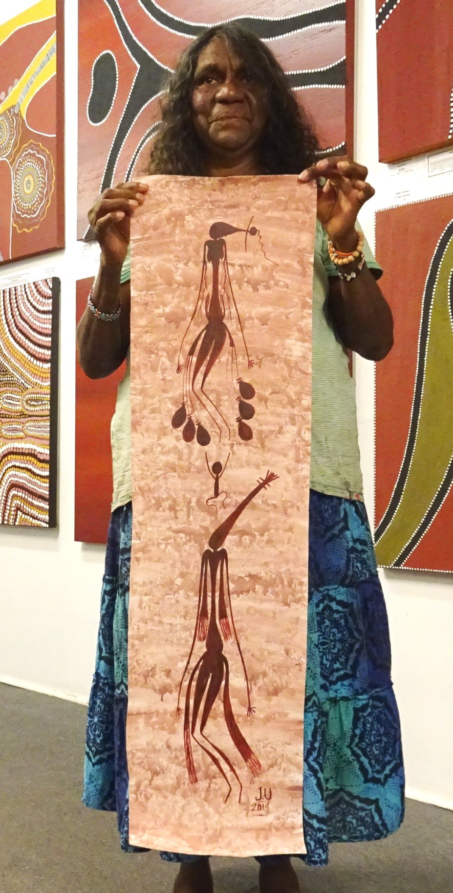 Jemma paints the beautiful Gwion Gwion Rock Art which is abundant in her region.