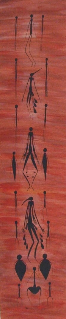 Jemma paints the beautiful Gwion Gwion Rock Art which is abundant in her region.
