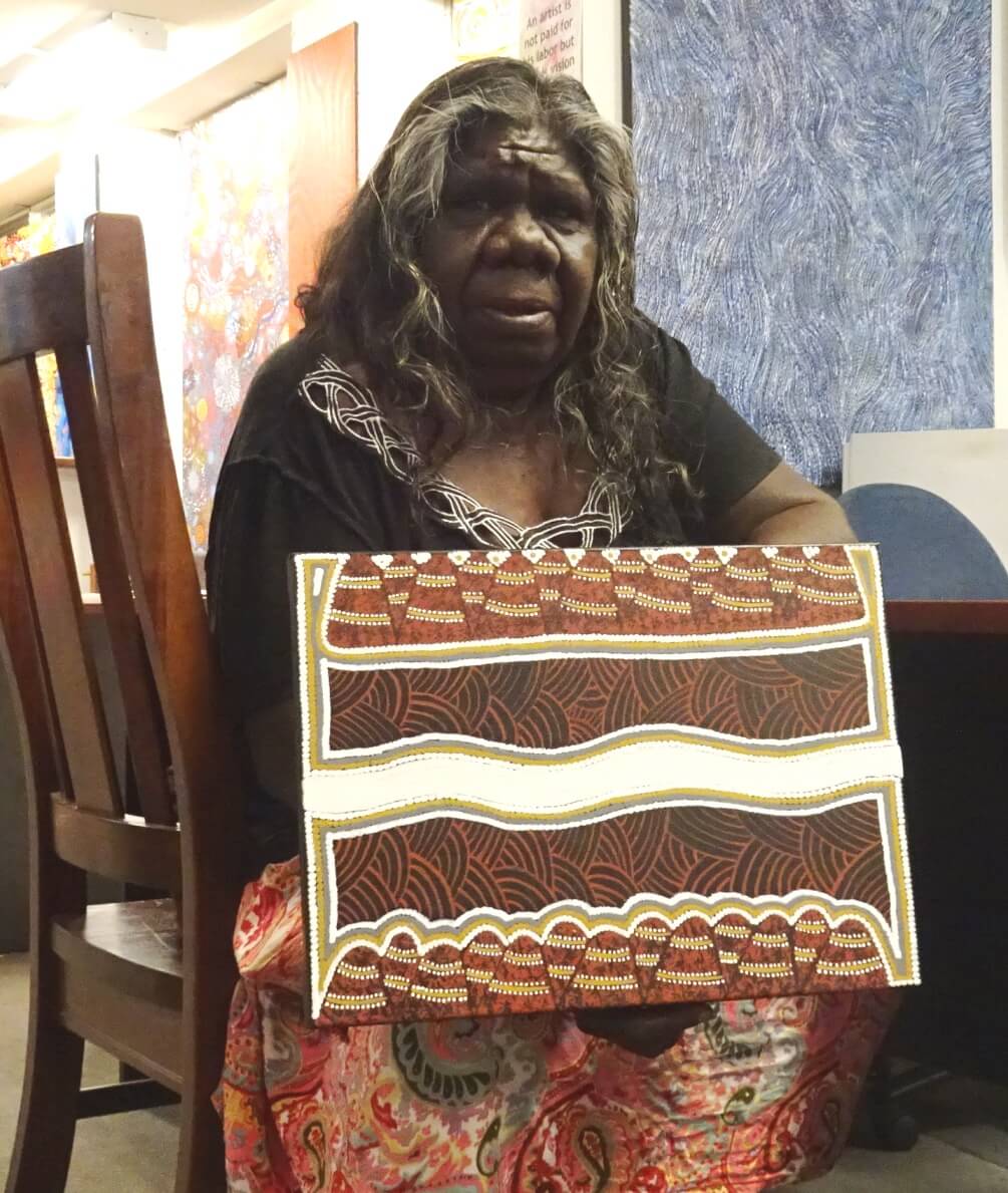 Ju Ju is a member of a well known painting family – her late grandmother Sheba and mother Freda were also artists –three generations of very talented ladies. Ju Ju’s son and grandchildren also now paint so we have many generations of Wilson artists to look forward to in the future.