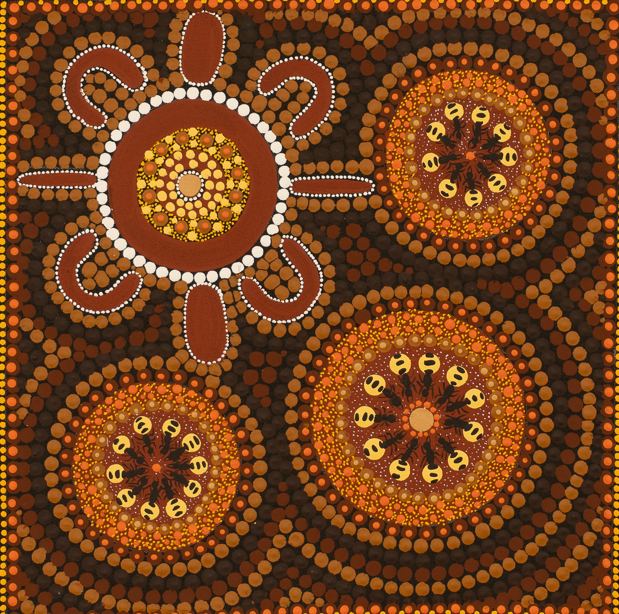 Kathleen’s fine Central Desert Dot Painting style celebrates her discovery and connection to her indigenous heritage.