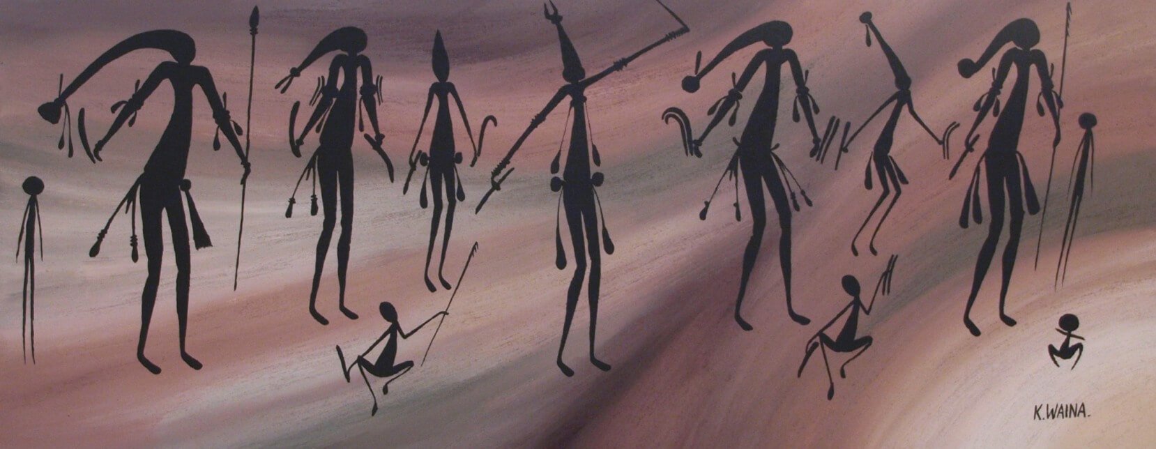 Kevin is one of the best known Gwion Gwion (Bradshaw) artists. He has exhibited widely and his works are held in major private and corporate collections worldwide. Due to his in-depth knowledge of Gwion Gwion Art (one of the most fascinating of the rock art styles), he is often interviewed and consulted by the media and experts in this field.