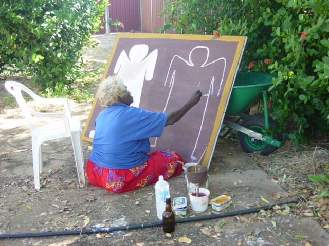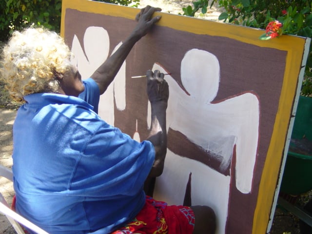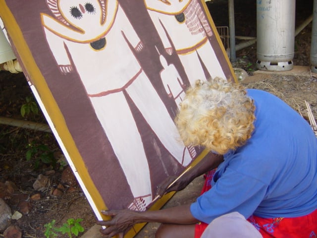 Lily was born Prince Regent River area c. 1921. From her father’s country, Woombangowangoorr, she went with her mother and family to Mitchell Plateau. She married Jack Karadada and eventually settled in Kalumburu where she lived with her huge extended and very talented family.