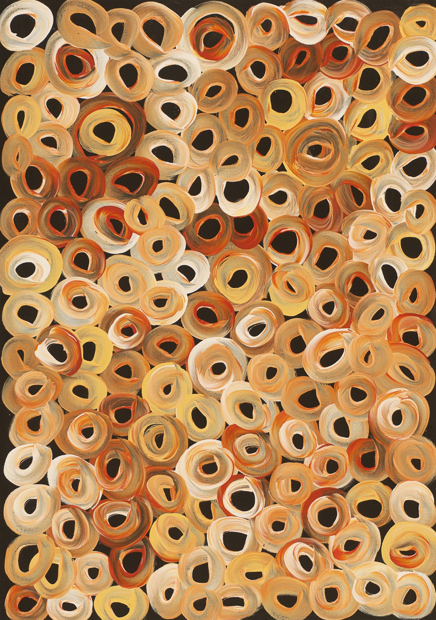 Bush Melon Dreaming comprises small circles of colour strewn across the canvas.