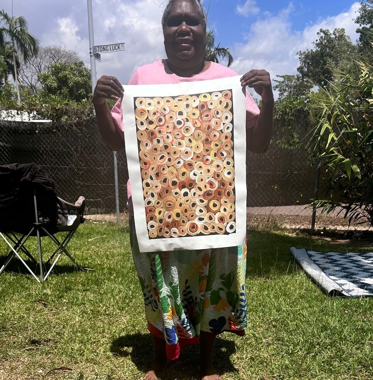 Louise lives in Darwin with her husband and children. Her sisters also live in Darwin and they often travel back to Ti-Tree and Stirling Station in the north Utopia region near Tennant Creek.