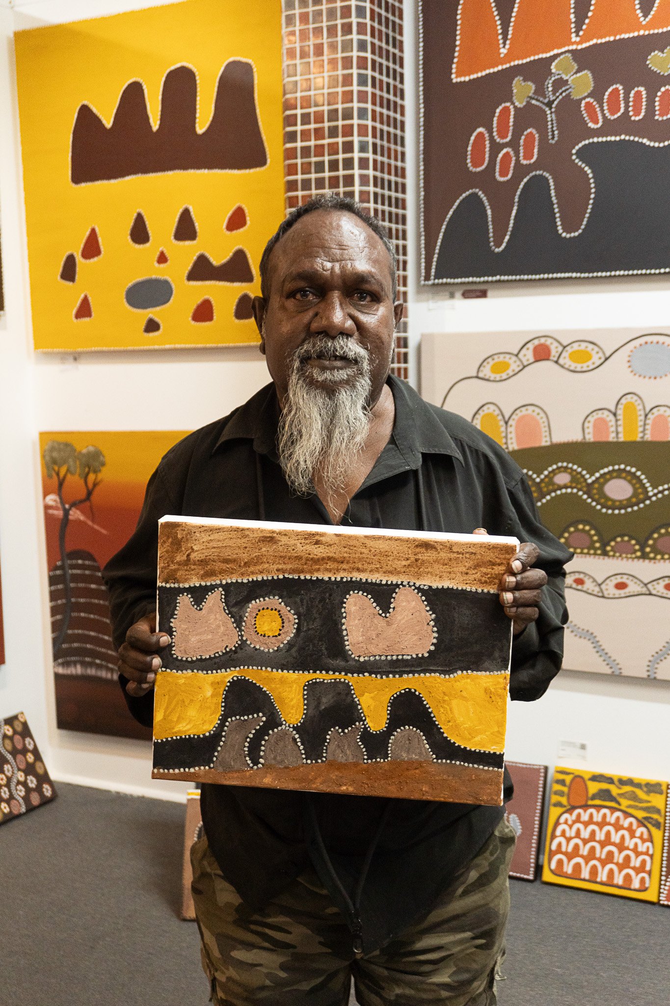In 2025, Peter was selected as one of the Rising Stars at the prestigious Outstation Gallery exhibition in Darwin, further cementing his reputation as one of the most exciting new voices in contemporary Aboriginal art.
