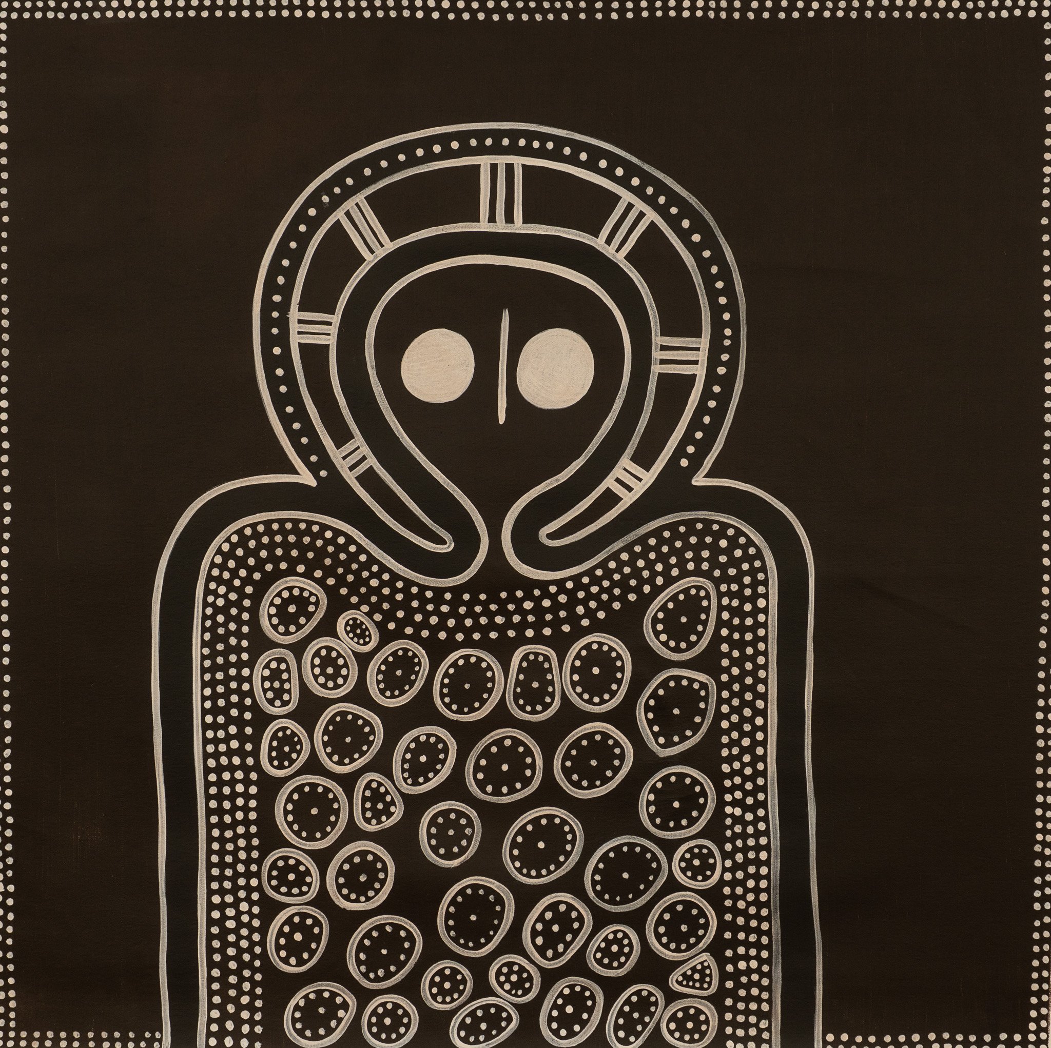 Petrina was extremely close to her late grandfather Jack Dale who encouraged her to paint from a young age. Painting allowed Jack to pass on the stories of his country which relate to the Wandjina rock art of the West Kimberley.