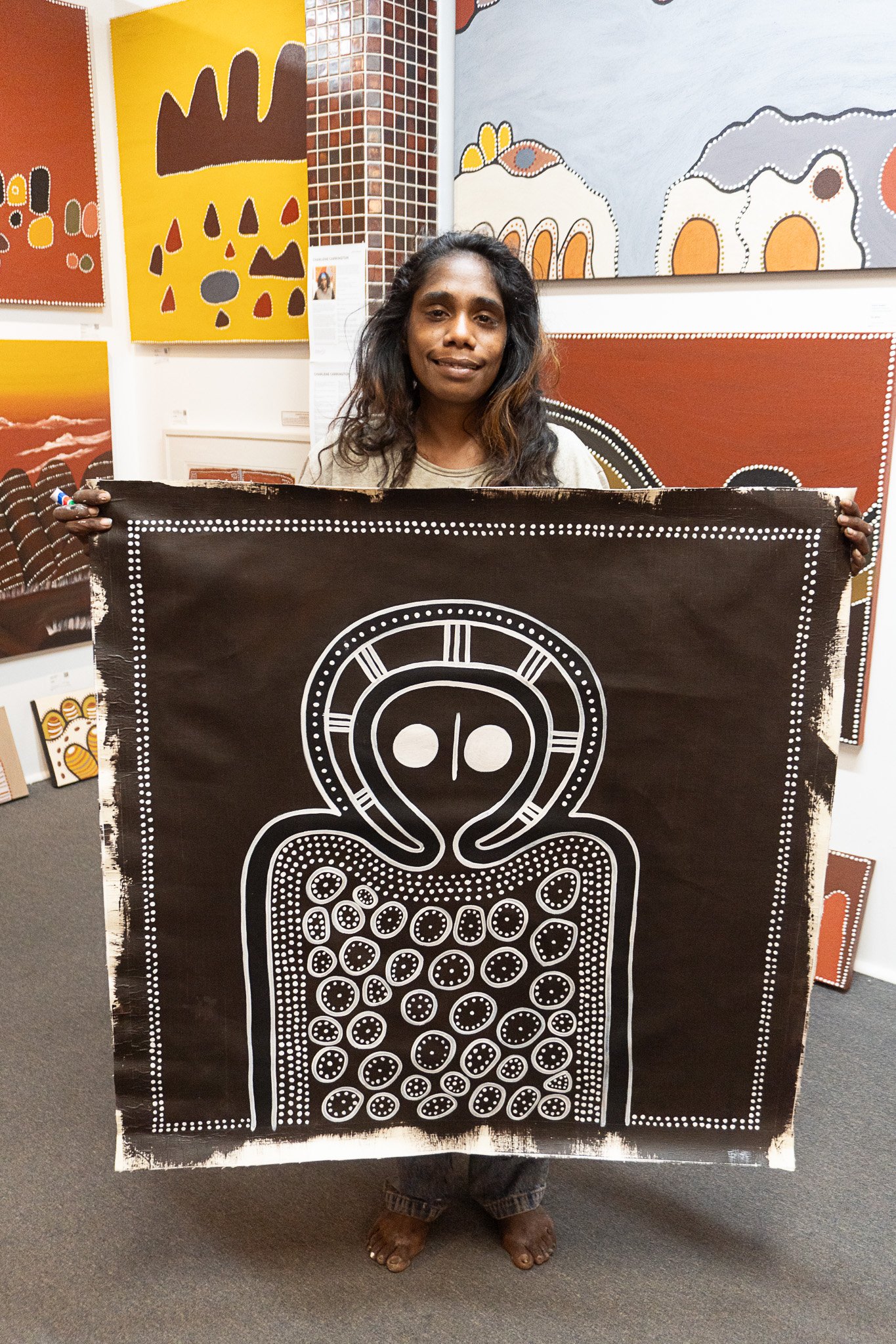 Petrina’s mother, Edna Dale, is a senior artist and Petrina and her mother often paint side by side. Petrina was only 12 when her first artworks were included in an exhibition at Japingka Gallery in Perth alongside the works of her mother and grandfather. An incredible achievement for such a young artist.