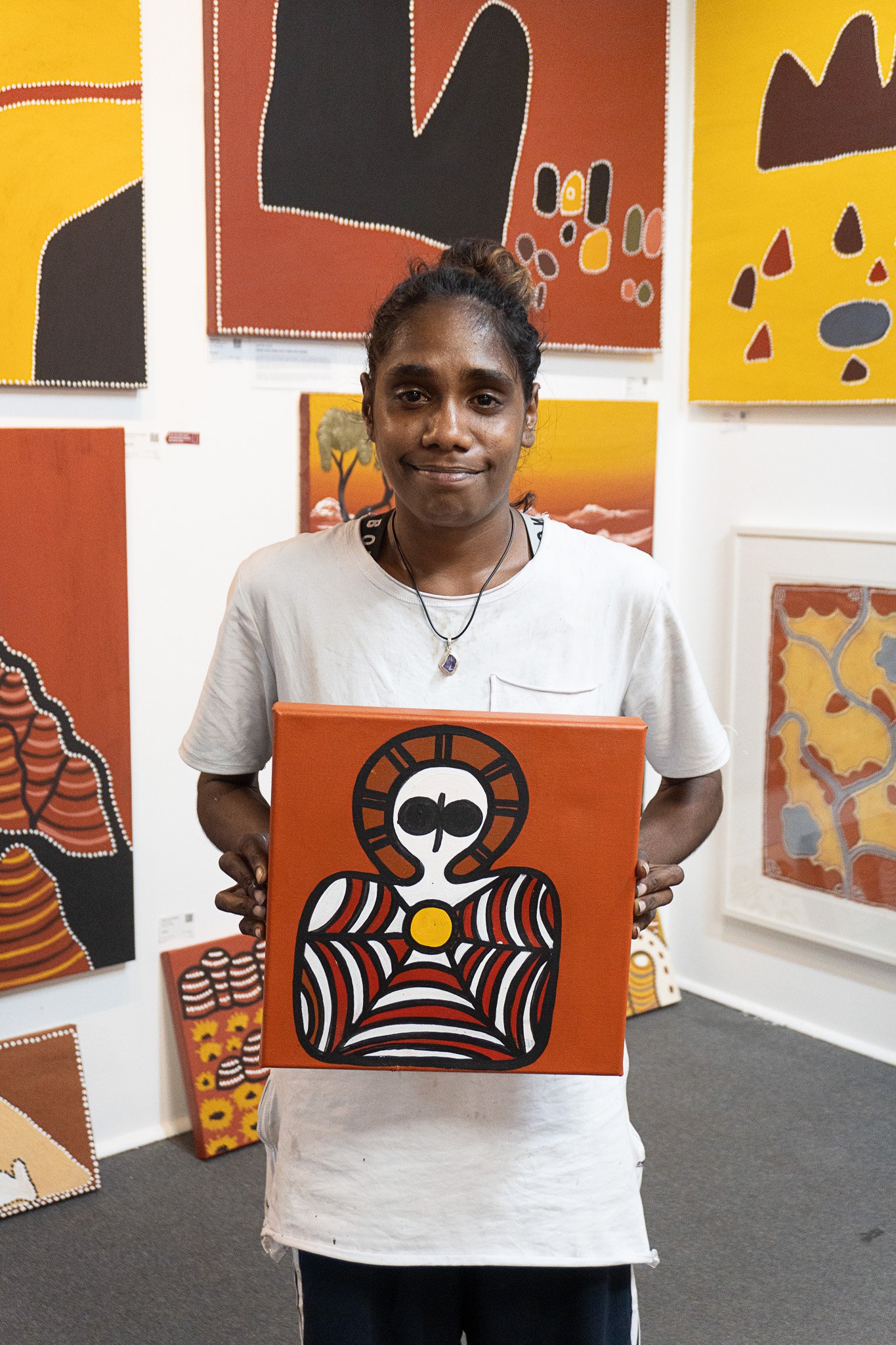Petrina’s mother, Edna Dale, is a senior artist and Petrina and her mother often paint side by side. Petrina was only 12 when her first artworks were included in an exhibition at Japingka Gallery in Perth alongside the works of her mother and grandfather. An incredible achievement for such a young artist.