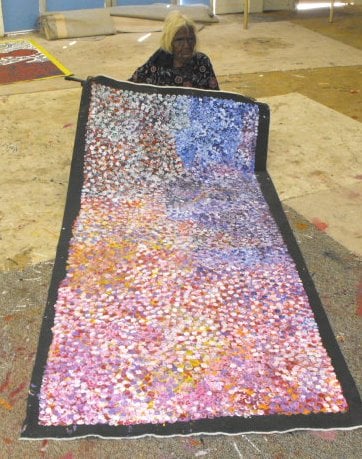 Polly now lives at Camel Camp on Utopia with her family and sisters, Kathleen, Maisy and Angeline Pwerle.