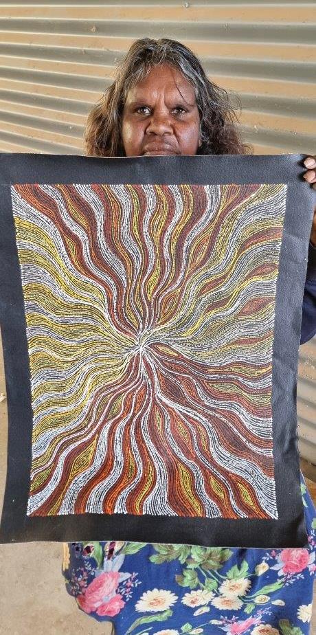 In the late 1990s, Rita embarked on her painting journey under the guidance of her renowned aunt, Abie Loy and famous great aunties Kathleen and Gloria Petyarre. While focusing on raising her children, she painted sporadically for many years, but has now reignited her passion, painting regularly once more.