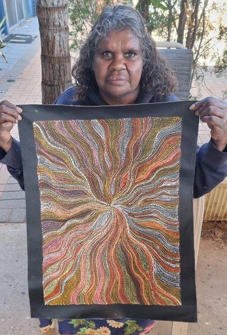 In the late 1990s, Rita embarked on her painting journey under the guidance of her renowned aunt, Abie Loy and famous great aunties Kathleen and Gloria Petyarre. While focusing on raising her children, she painted sporadically for many years, but has now reignited her passion, painting regularly once more.