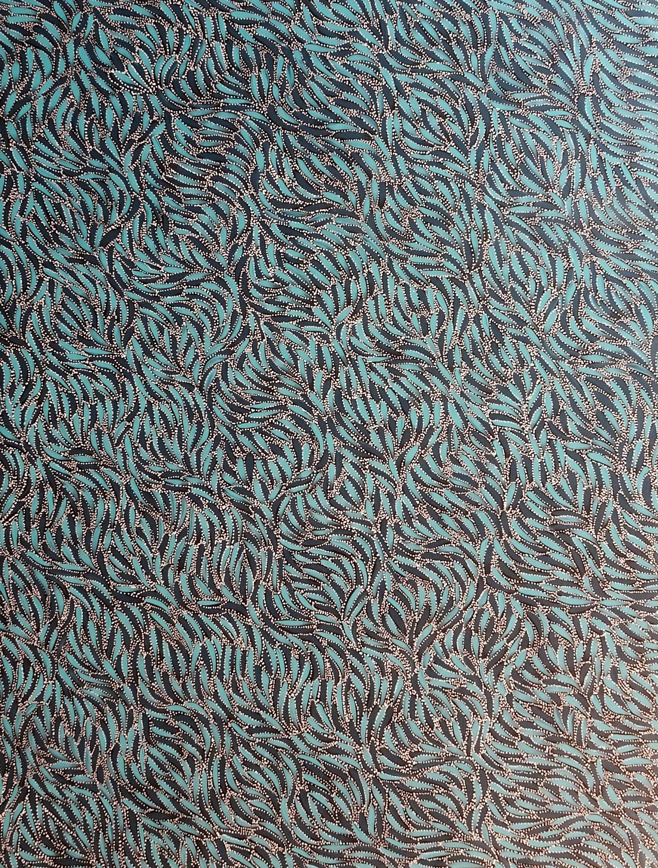 Rosemary was one of a group of Anmatyerre women at the forefront of the art movement in the Utopia area. She was amongst a small group of women who travelled to Indonesia to learn various techniques in the manufacturing of batiks. It was after the “summer project” sponsored by the CAAMA network in 1998 that Rosemary spread her wings and started painting with acrylics and canvas.