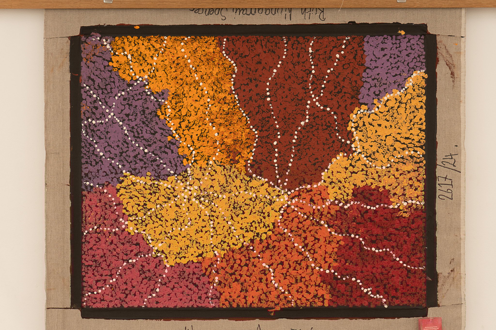 Artwork is accompanied by Warlukurlangu Artists (Yuendumu) Art Centre Certificate of Authenticity/Provenance
