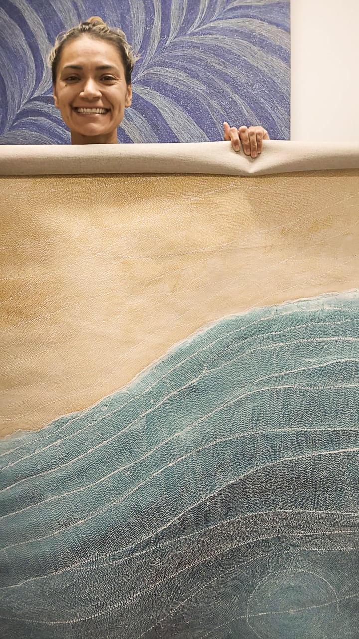 After 3 years living and painting in Canberra, Sarrita and her husband returned back to Darwin in 2017 where she spent most of her childhood and welcomed their first child Steele. In late 2018, her second son Grange was born. Sarrita King has many personal achievements but it is her desire to visually communicate her inspiration and the land, which keeps her ancestral narrative alive and provides a new way of looking back while looking forward.