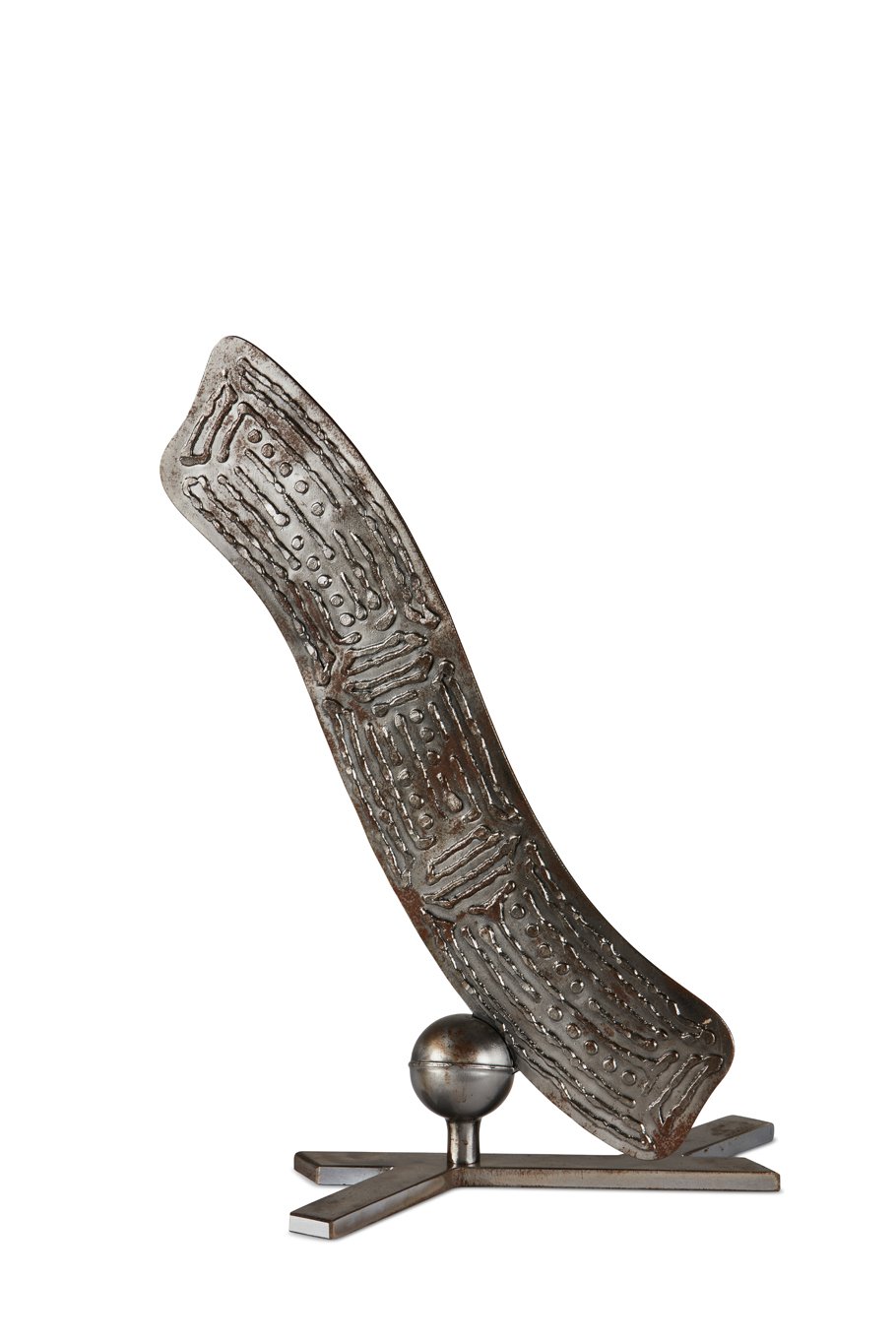 With this sculpture Sarrita wanted to translate her ‘Language of the Earth” story into a 3D object. The choice to use metal is a reflection on the strength and longevity of the Australian Indigenous culture and the stories passed down over the centuries. The tarnish is a reflection of the age of the markings and long history of these stories.