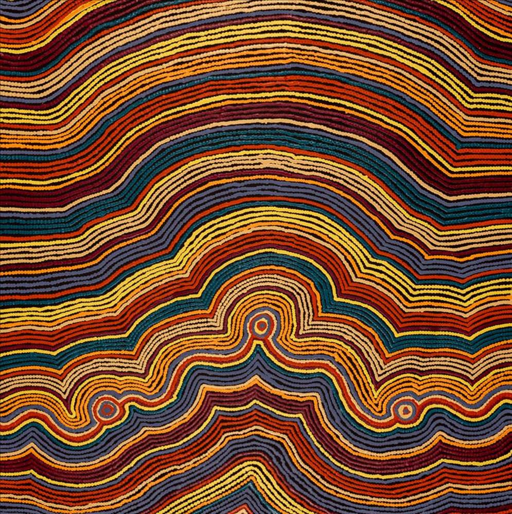 Pikilyi is a large and important waterhole and natural spring near Mount Doreen station. Pikilyi Jukurrpa (Vaughan Springs Dreaming) tells of the home of two rainbow serpents, ancestral heroes who lived together as man and wife. The woman ‘rainbow serpent’ was of the Napanangka skin group, the man was a Japangardi. This was a taboo relationship contrary to Warlpiri religious law. Women of the Napanangka and Napangardi subsection sat by the two serpents, picking lice off them. For this service, the two serpents allowed the women to take water from the springs at Pikilyi. This was because the serpents were the ‘kirda’, or ceremonial owners, for that country. The spirits of these two rainbow serpents are still at Pikilyi today.