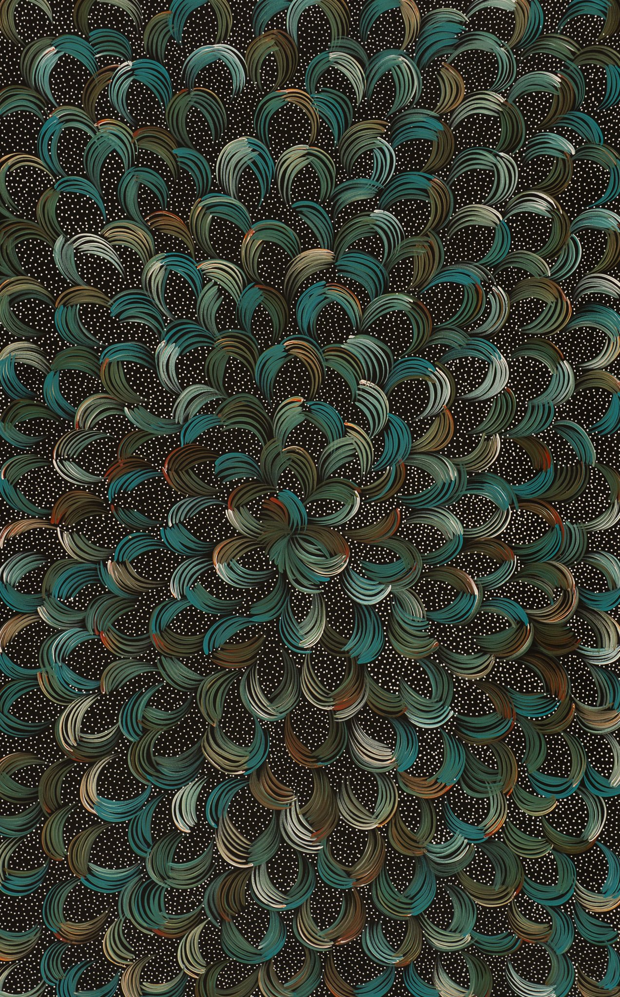 Selina Numina was born in 1978 and is the daughter of Barbara Price Mbtitjana who is an elder painter and cultural elder from Stirling Station. Selina has five sisters, Jacinta, Lanita, Louise, Caroline and Sharon Numina, who are also well respected artists from Utopia. Selina, along with her sisters and brothers were sent to boarding school in Darwin as no secondary schooling was available in Tennant Creek, 500kms north of Alice Springs. The family now live in Darwin and often travel back to Ti Tree and Stirling Station in the north Utopia region near Tennant Creek.