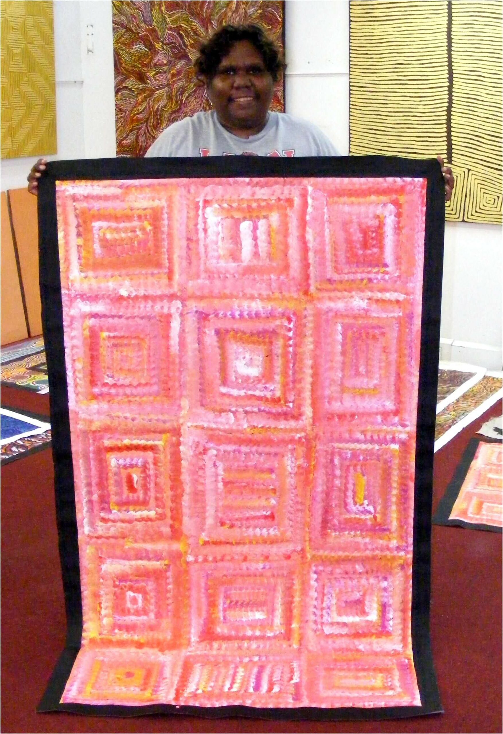 Sharon lives in Darwin with her four sisters, Jacinta, Lanita, Louise and Caroline Numina, who are also well respected artists from Utopia.