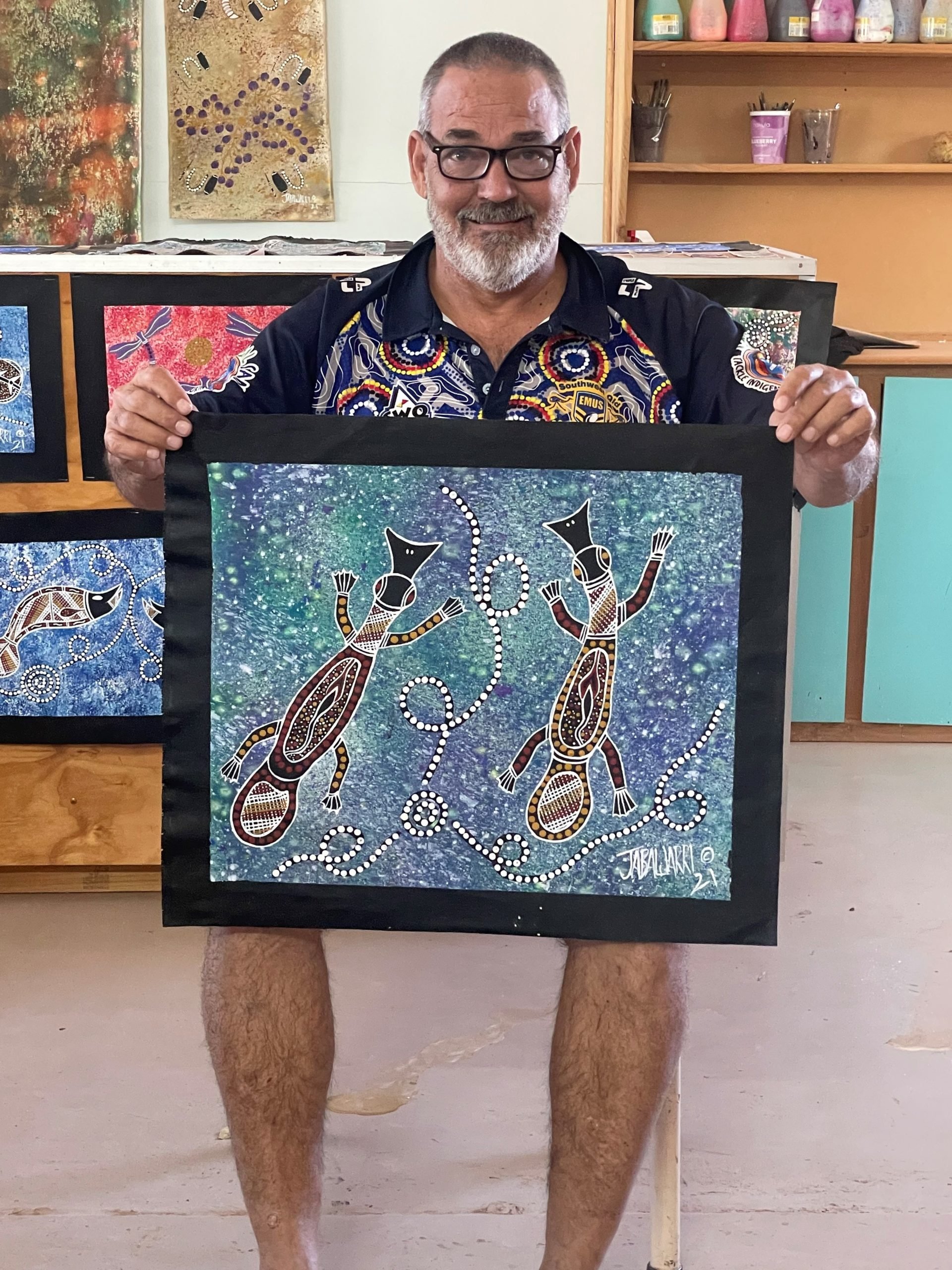 Steve continues to paint for his own enjoyment as well as a way to bring people together in a shared love for aboriginal art and stories. He wants to inspire young aboriginal artists to express themselves, their beliefs, values and culture through their art work.