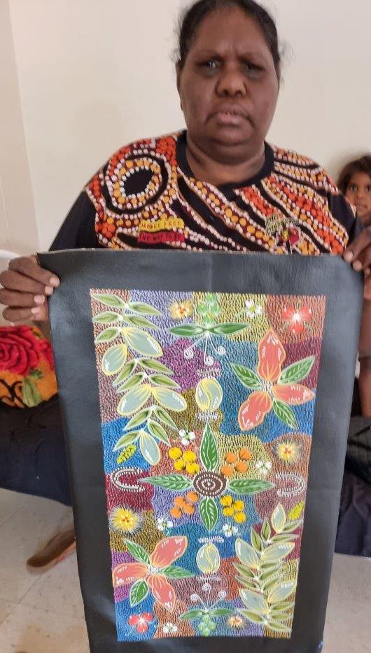 Tanya comes from the most famous painting family based in Utopia and her relatives include artists such as Minnie Pwerle and Gloria Petyarre. Tanya learned to paint by watching her Aunty, senior artist Gracie Morton Pwerle.