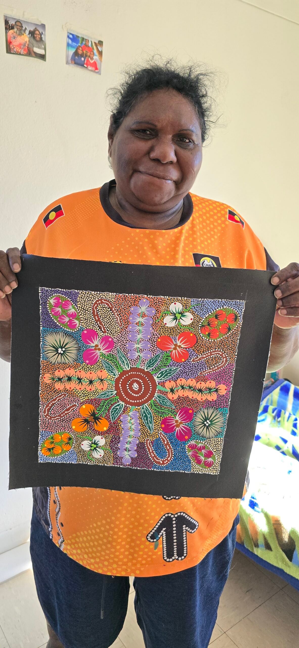 Through her paintings, Tanya continues the cultural legacy of her family while also offering her own artistic voice. Her works honour the resilience of her people, celebrating the knowledge of Country, the importance of bush foods and medicine, and the stories of Anmatyerre life that remain central to her identity and her art.