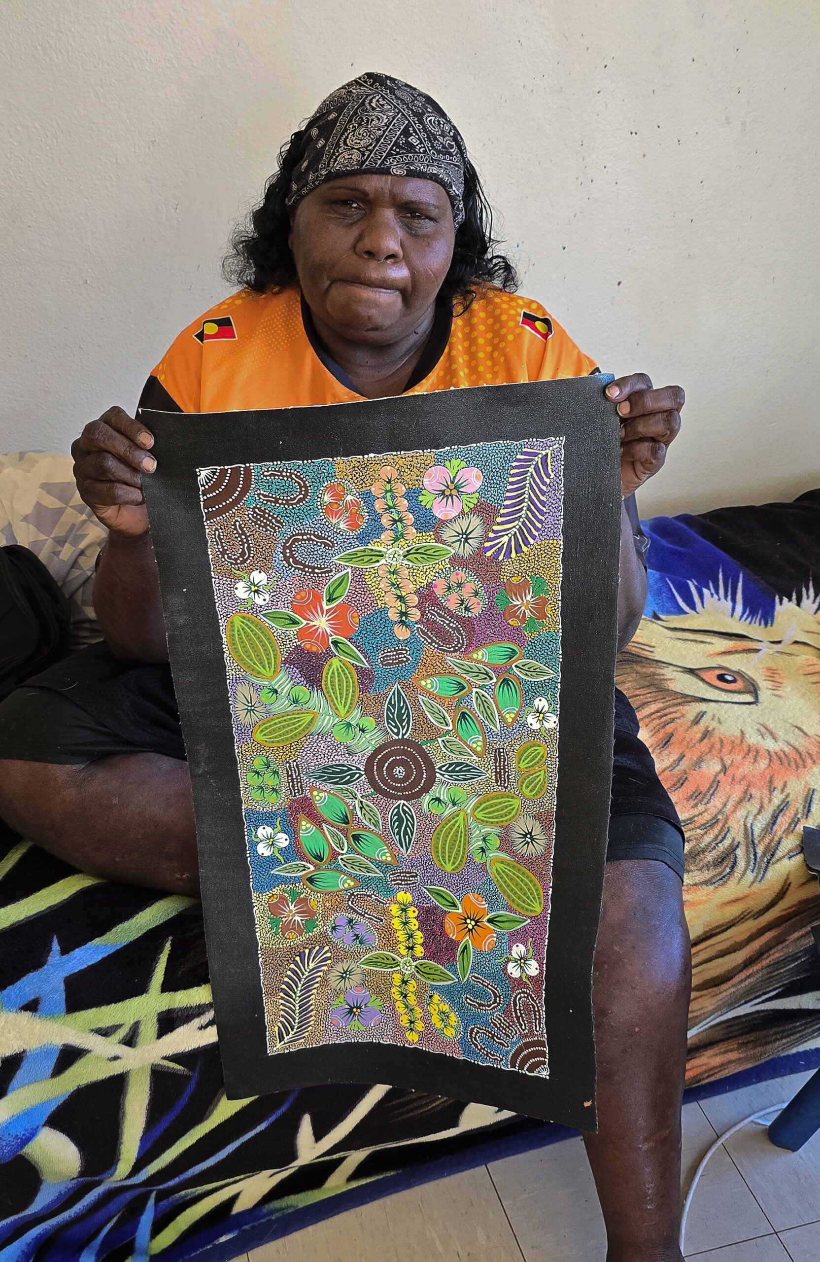 Through her paintings, Tanya continues the cultural legacy of her family while also offering her own artistic voice. Her works honour the resilience of her people, celebrating the knowledge of Country, the importance of bush foods and medicine, and the stories of Anmatyerre life that remain central to her identity and her art.
