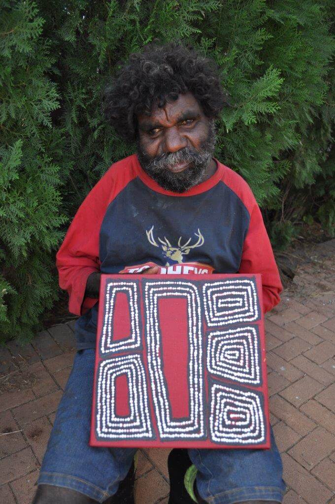 Thomas travels between his homeland of Kiwirrkura, one of the most remote settlements in Western Australia, and currently resides at the Aboriginal community of Kintore in the Northern Territory.